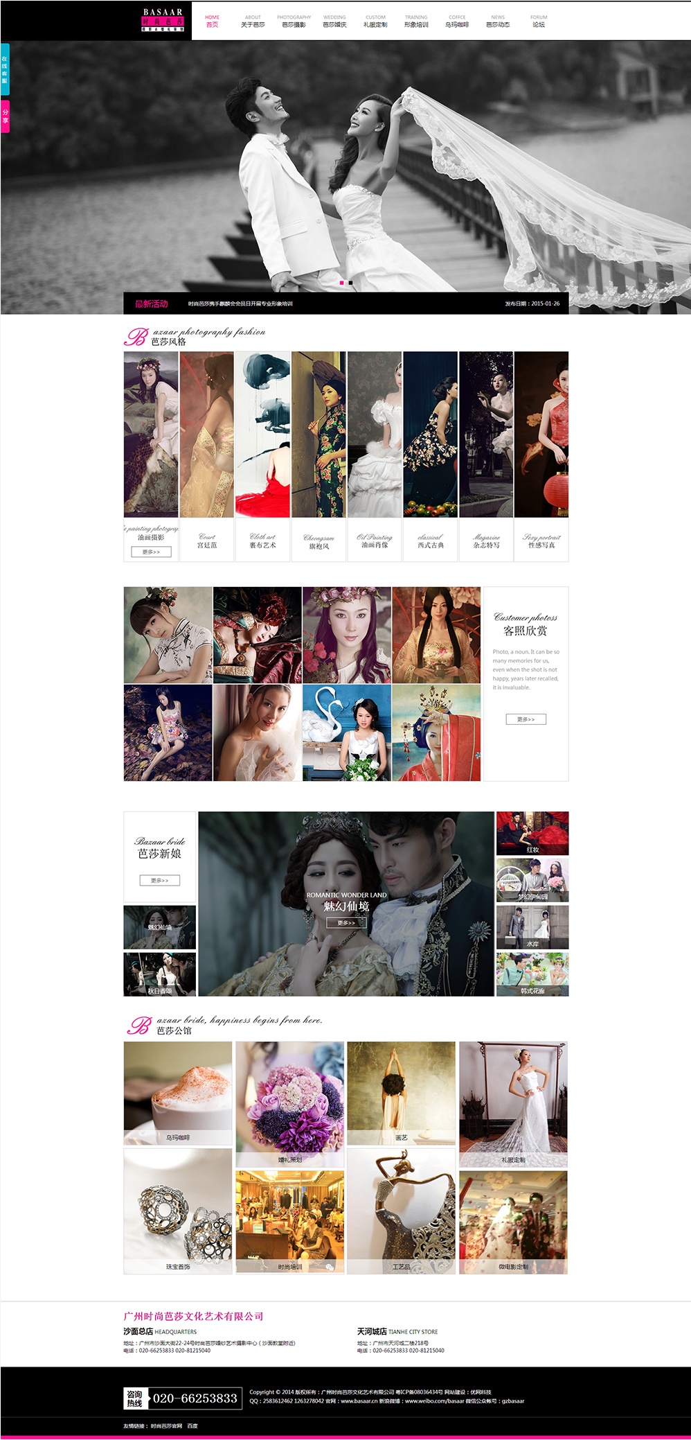 1993年成立,到至今已有20年歷史的高端攝影品牌。公司的產(chǎn)品風(fēng)格獨(dú)特,個性鮮明。攝影及形象設(shè)計(jì)的班底主要來自各藝術(shù)院校(尤以廣州美術(shù)學(xué)院為主) 。深厚的藝術(shù)底蘊(yùn),尊貴的客戶服務(wù),使公司成為國內(nèi)攝影行業(yè)的絞絞者,是國內(nèi)家喻戶曉的攝影品牌。公司集藝術(shù)攝影、婚紗攝影、婚禮策劃、愛情微電影制作于一身,真正為您“一站式” 記錄人生每個不同階段的精彩瞬間。