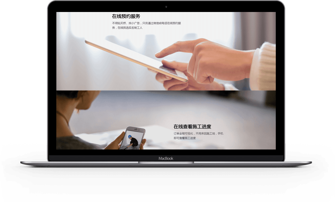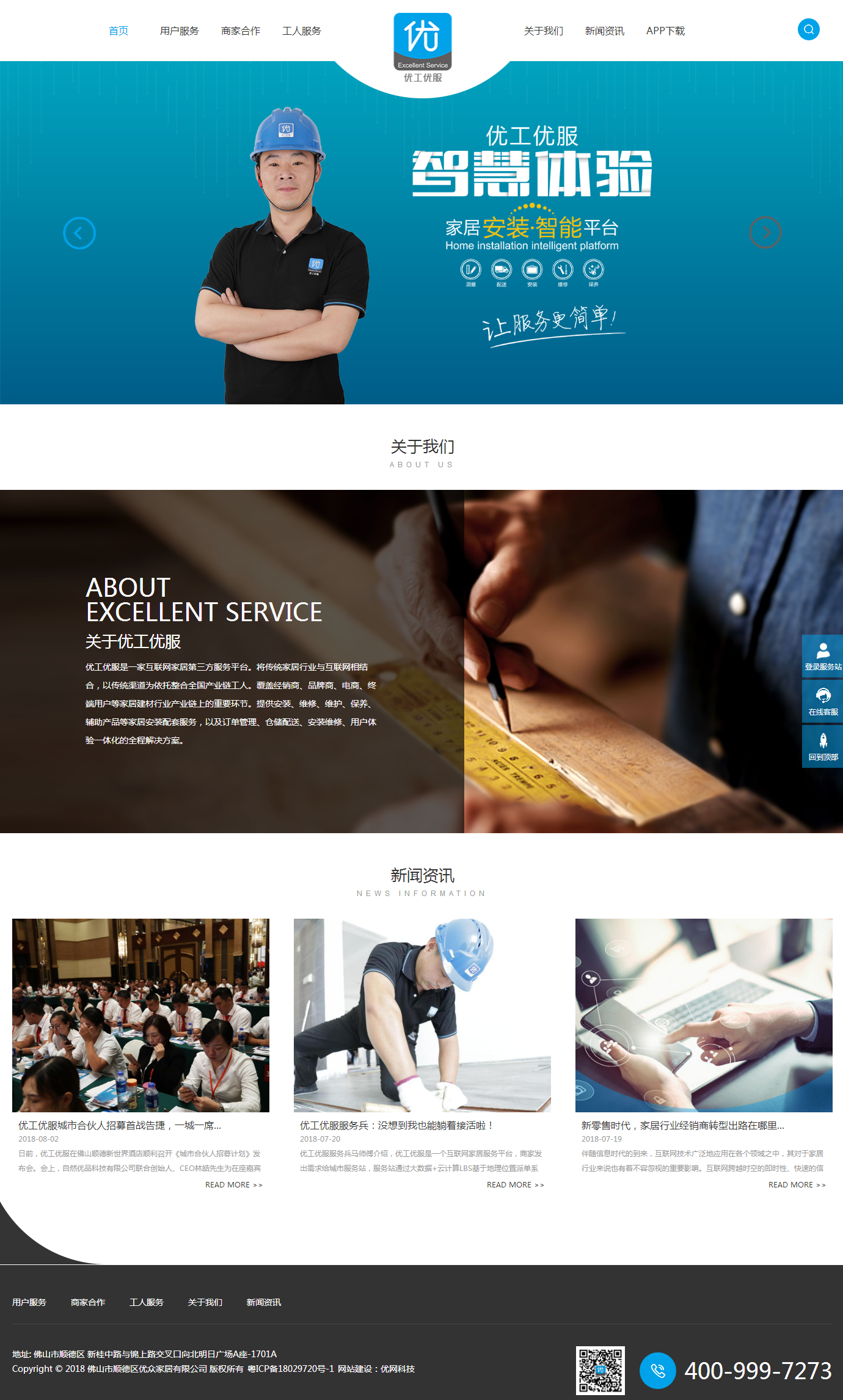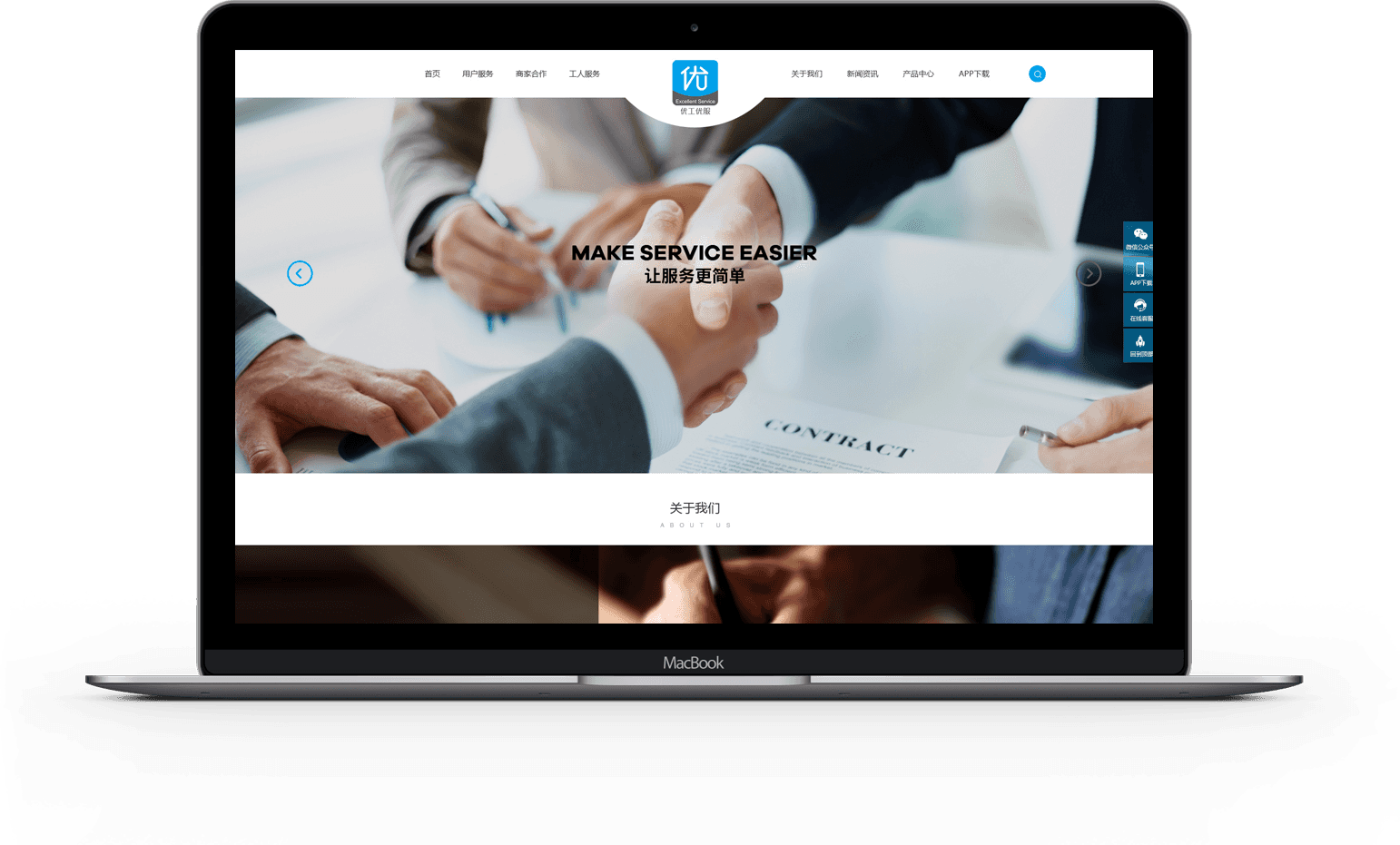 網(wǎng)站內(nèi)容共劃分為用戶服務(wù)、商家合作、工人服務(wù)、關(guān)于我們、新聞資訊、APP下載六大欄目,首頁主要展示關(guān)于我們、新聞資訊欄目?jī)?nèi)容,版面欄目架構(gòu)規(guī)劃清晰,有效展示企業(yè)信息,凸顯企業(yè)實(shí)力。