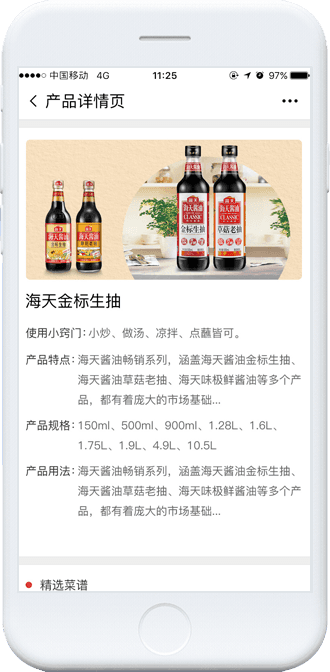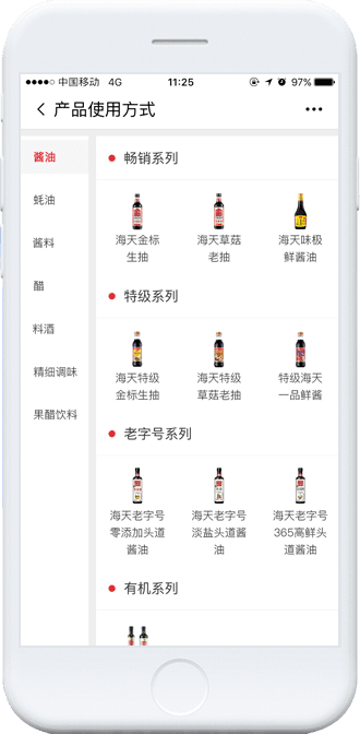 海天是中國調(diào)味品行業(yè)的優(yōu)秀企業(yè),專業(yè)的調(diào)味品生產(chǎn)和營銷企業(yè),歷史悠久,是中華人民共和國商務(wù)部公布的首批“中華老字號(hào)”企業(yè)之一。目前生產(chǎn)的產(chǎn)品涵蓋醬油、蠔油、醬、醋、料酒、調(diào)味汁、雞精、雞粉、腐乳等幾大系列百余品種300多規(guī)格,年產(chǎn)值過百億元。