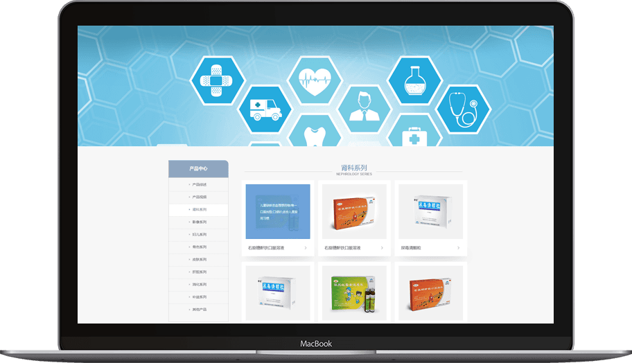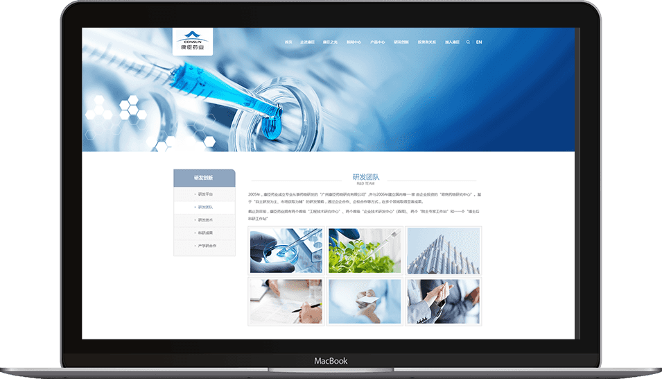 網(wǎng)站設(shè)計色調(diào)運用VI色,以藍色為主色調(diào),淺藍作為背景色,同時以醫(yī)研的相關(guān)元素作為背景,突出醫(yī)藥企業(yè)的行業(yè)特性;另一方面也凸顯了康臣藥業(yè)健康、專業(yè)的品牌形象。網(wǎng)頁設(shè)計在布局上充分考慮了用戶體驗效果,合理安排各內(nèi)容及頁面的框架的排版。