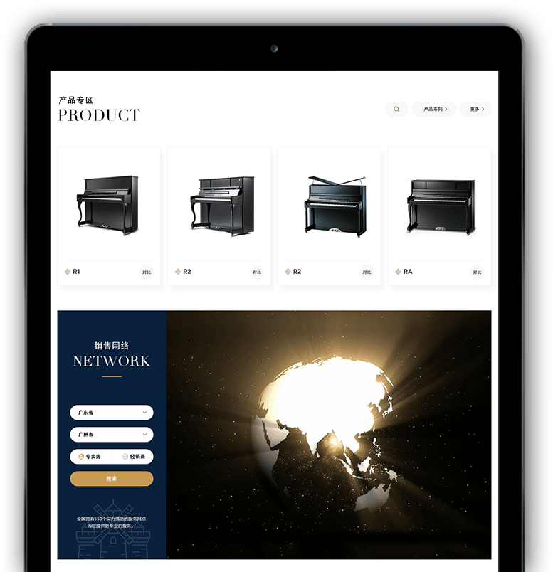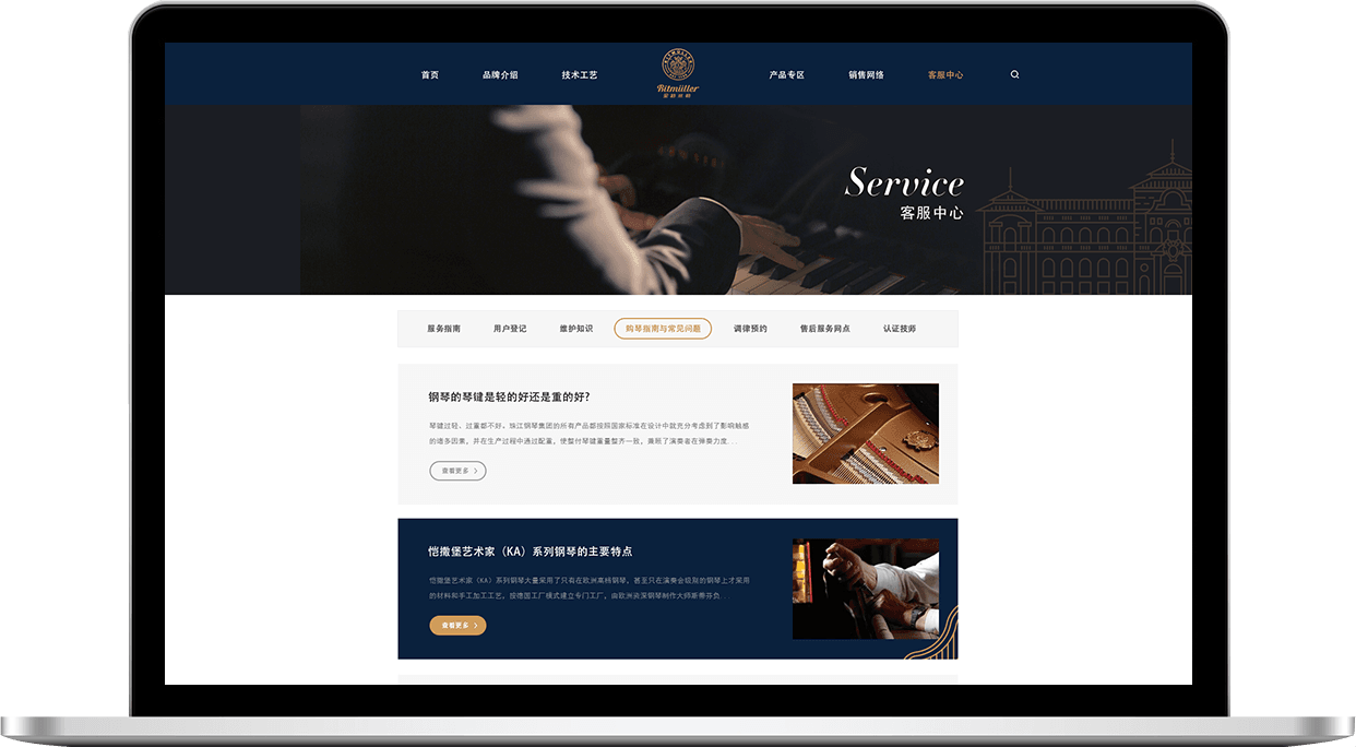 欄目設計上分別規(guī)劃為“品牌介紹”“技術工藝”“產品專區(qū)”“銷售網絡”“客服中心”等詳細內容。品牌介紹上介紹了里特米勒的品牌由來,技術工藝又分為幾個二級欄目,介紹工藝的特點、成果,產品專區(qū)上根據不同的類型分類產品,銷售網絡可進行查看具體的銷售店面,后的客服中心關于各種詳情的服務。