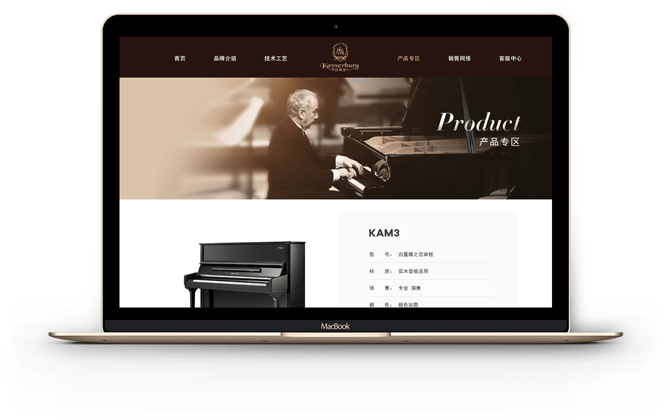 “愷撒堡”一詞在歐洲代表著皇室貴族。通過網(wǎng)站的搭建,為的是引導(dǎo)出具體的品牌,將通過獨(dú)具特色的優(yōu)勢,來打響品牌的知名度。更加具體形象化的讓受眾了解到“愷撒堡鋼琴”的魅力,不僅僅是一架鋼琴,更是代表對完美品質(zhì)和卓越品位的追求。