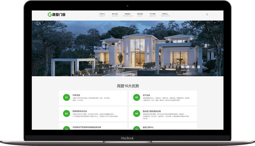 網(wǎng)站建設(shè)方向展示集團(tuán)產(chǎn)品、資訊、解決方案、高端案例、加盟、關(guān)于高登等信息,使得高登集團(tuán)網(wǎng)站建設(shè)的框架更加符合集團(tuán)推廣形象。首頁(yè)版塊以Banner圖為主,下方用圖標(biāo)+文字來展現(xiàn)企業(yè)的相關(guān)內(nèi)容,整體展示簡(jiǎn)約卻不失內(nèi)容,更好的突出企業(yè)的產(chǎn)品信息。
