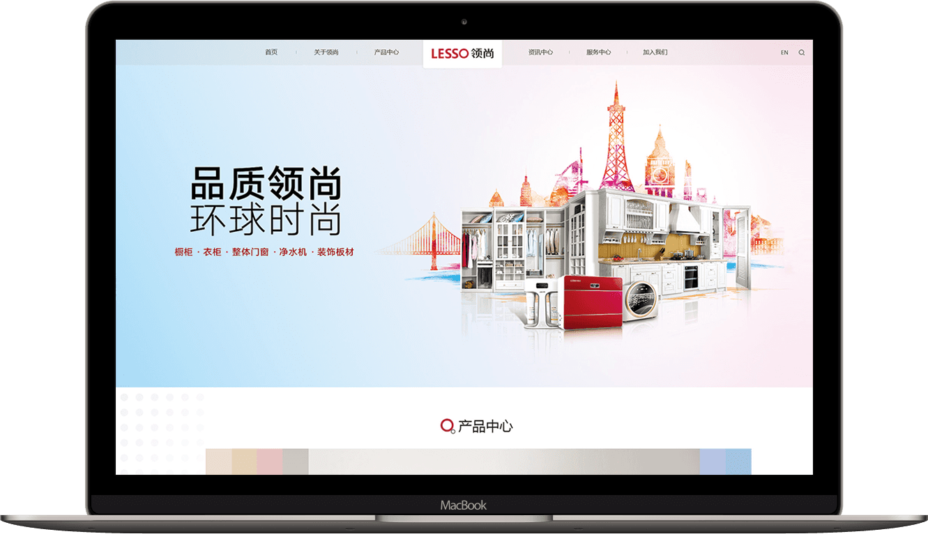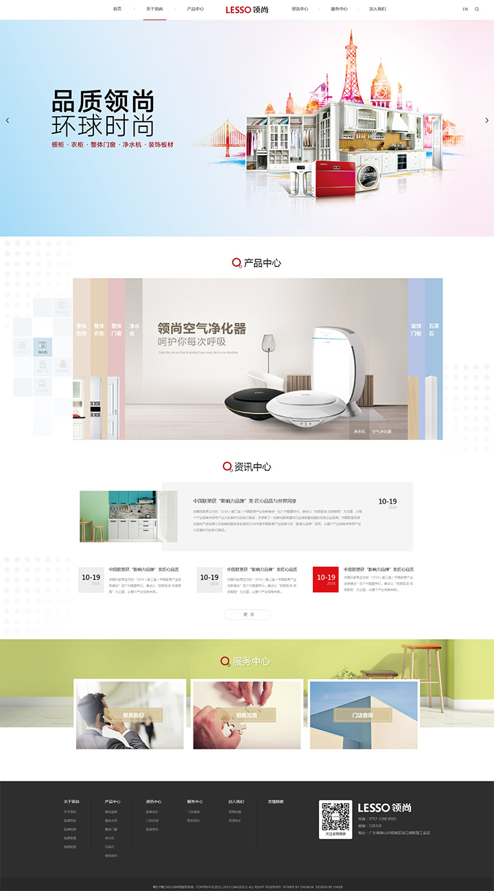 網(wǎng)站建設(shè)功能涵蓋的比較全面,欄目包括有:關(guān)于領(lǐng)尚,產(chǎn)品中心,資訊中心,服務(wù)中心和加入我們,供用戶詳細(xì)了解領(lǐng)尚的各種資訊信息。另外把二級(jí)欄目用圖片形式展示入口位置,頁(yè)面布局簡(jiǎn)約,顯得整體頁(yè)面配圖跟顏色適度自然。