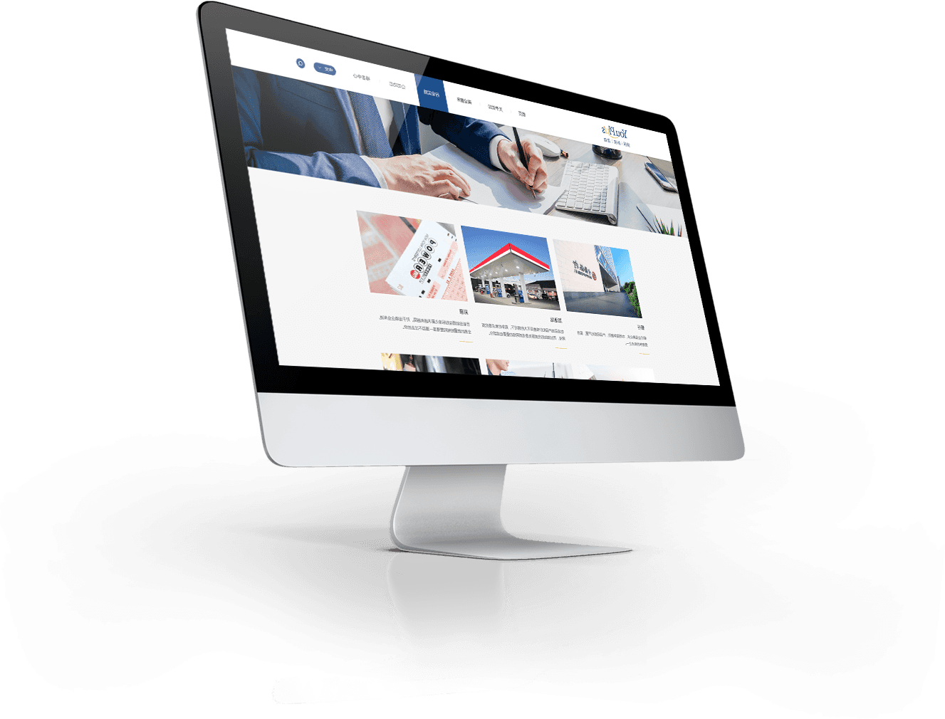 通過企業(yè)的LOGO色系,黃、藍色相互搭配,有效的表達企業(yè)的整體形象。同時采用大量留白設(shè)計展示,襯托出企業(yè)的LOGO,符合時代的審美要求,且整體的瀏覽體驗愉悅。