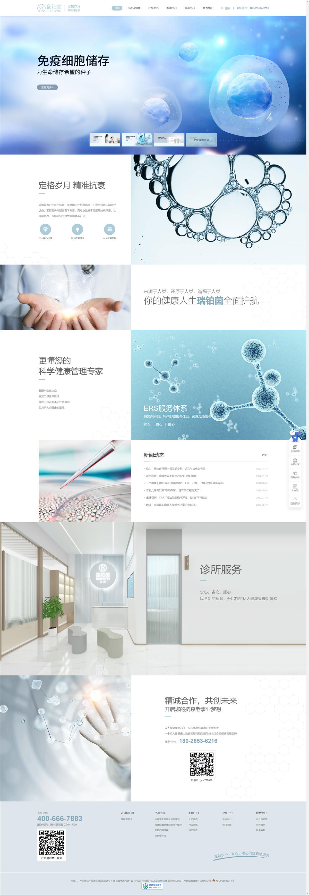 首頁布局合理,新穎豐富。大幅BANNER采用一屏展示,切換呈現(xiàn)多個(gè)產(chǎn)品,能讓用戶對瑞鉑茵的產(chǎn)品有一個(gè)完整的印象。除了產(chǎn)品之外,更多的是通過圖文設(shè)計(jì)來突出瑞鉑茵在生物技術(shù)方面的實(shí)力。文字方面的合理設(shè)計(jì),更能吸引用戶的瀏覽。新聞動態(tài)的放置,能讓用戶及時(shí)了解瑞鉑茵的資訊信息。診所服務(wù)的設(shè)計(jì),更能給到用戶安心、省心、順心的感覺。底部搭配商務(wù)合作信息,吸引需要商務(wù)合作的群體進(jìn)行掃碼聯(lián)系。