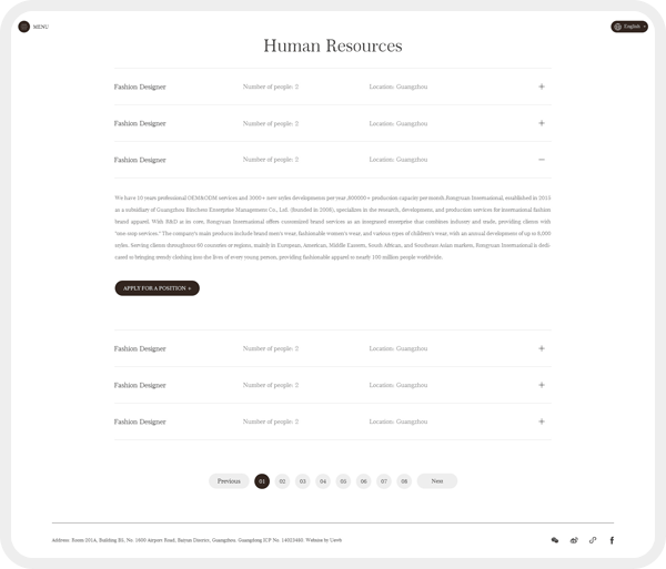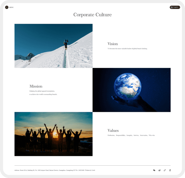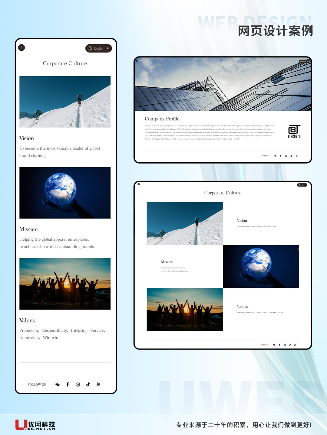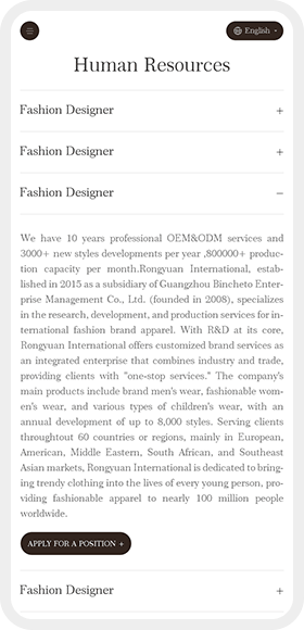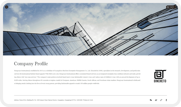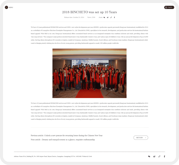 中英文雙語版塊的設(shè)置,不僅極大地方便了國內(nèi)外用戶的瀏覽與交互,更彰顯了榮緣(繽綺度)品牌擁抱世界的國際化視野與雄心。