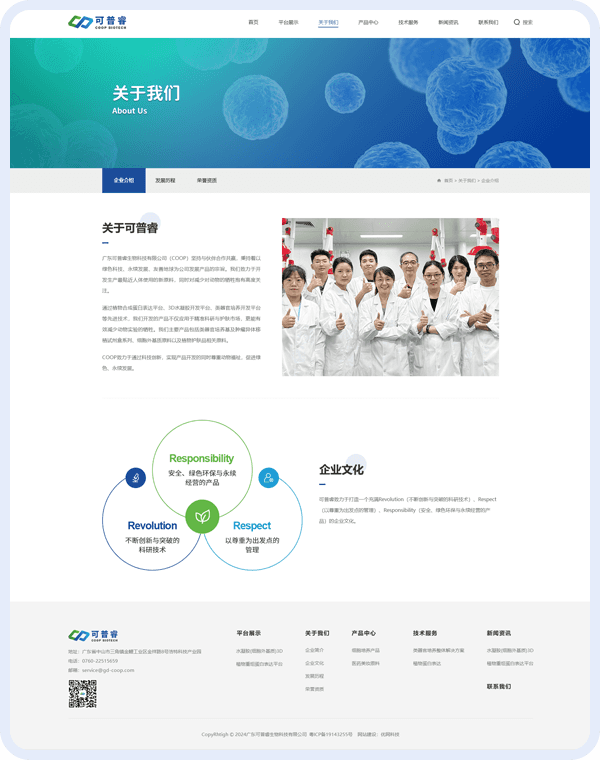 在數(shù)字化時代,廣東可普睿生物科技有限公司為進一步提升品牌影響力,全面展示其核心業(yè)務和研發(fā)實力,決定打造全新的官方網(wǎng)站。這一舉措旨在通過專業(yè)的在線平臺,與全球客戶及合作伙伴建立更緊密的聯(lián)系,共同推動生物科技領域的創(chuàng)新發(fā)展。