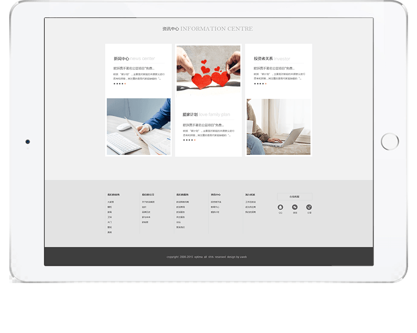 網(wǎng)站建設(shè)主題突出,與歐派推行愛家理念相結(jié)合,向用戶展示了歐派的品牌高度。歐派官網(wǎng)將成為歐派家居集團(tuán)對外宣傳的重要信息平臺,統(tǒng)一了歐派品牌形象,向用戶展示了品牌形象、企業(yè)文化;為用戶提供專業(yè)化服務(wù)的同時,傳達(dá)了歐派的服務(wù)理念。