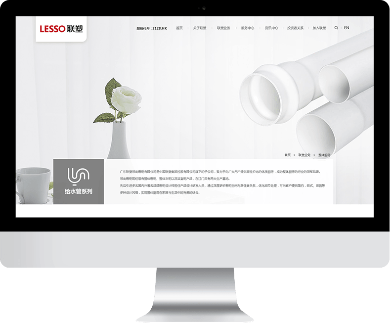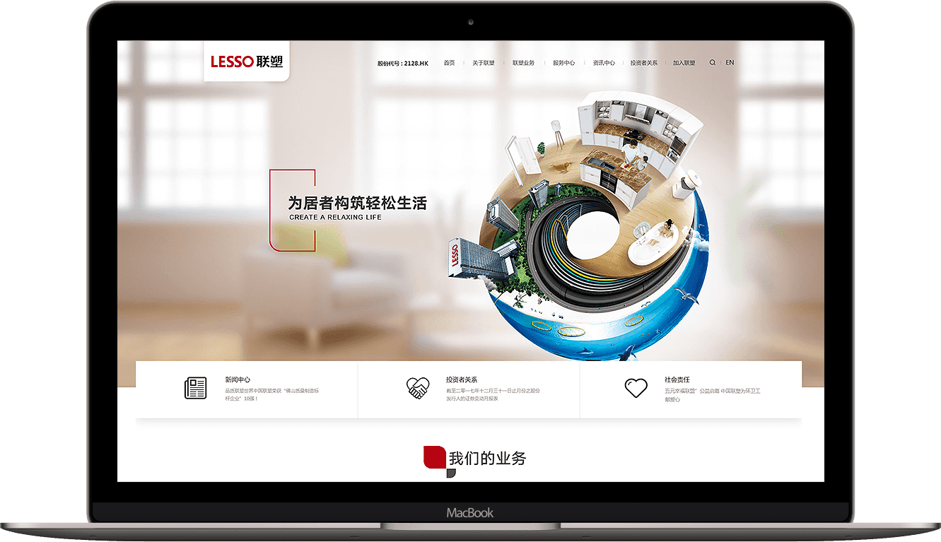 聯(lián)塑此次網(wǎng)站建設(shè)內(nèi)容主要?jiǎng)澐譃椋宏P(guān)于聯(lián)塑、聯(lián)塑業(yè)務(wù)、服務(wù)中心、資訊中心、投資者關(guān)系、加入聯(lián)塑六大板塊,首頁主要展示新聞中心、投資者關(guān)系、社會(huì)責(zé)任、我們的業(yè)務(wù)、我們的服務(wù)欄目,其中新聞中心、投資者關(guān)系、社會(huì)責(zé)任采用快捷入口的形式展示在banner圖下方,我們的業(yè)務(wù)、我們的服務(wù)欄目采用圖文結(jié)合的形式展示,版面布局豐富,有效凸顯聯(lián)塑業(yè)務(wù)與服務(wù)。
