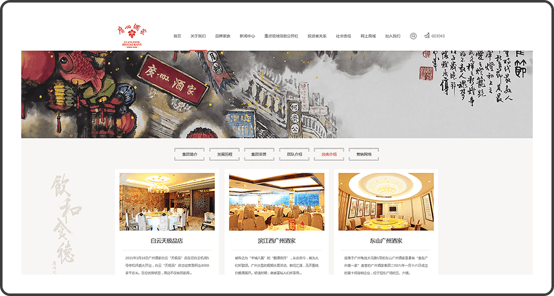通過(guò)網(wǎng)站的建設(shè),推行廣州酒家集團(tuán)將繼續(xù)堅(jiān)守“質(zhì)量,以質(zhì)取勝”的經(jīng)營(yíng)理念,秉承“誠(chéng)暖顧客心”的企業(yè)精神,奉行“弘揚(yáng)中華飲食文化”的企業(yè)使命,更廣泛的讓大眾了解企業(yè)的動(dòng)態(tài)和發(fā)展,并且公司能夠?qū)で笮詢r(jià)比化,達(dá)到經(jīng)濟(jì)效益、美感效益、實(shí)用效益的完美結(jié)合的企業(yè)形象。