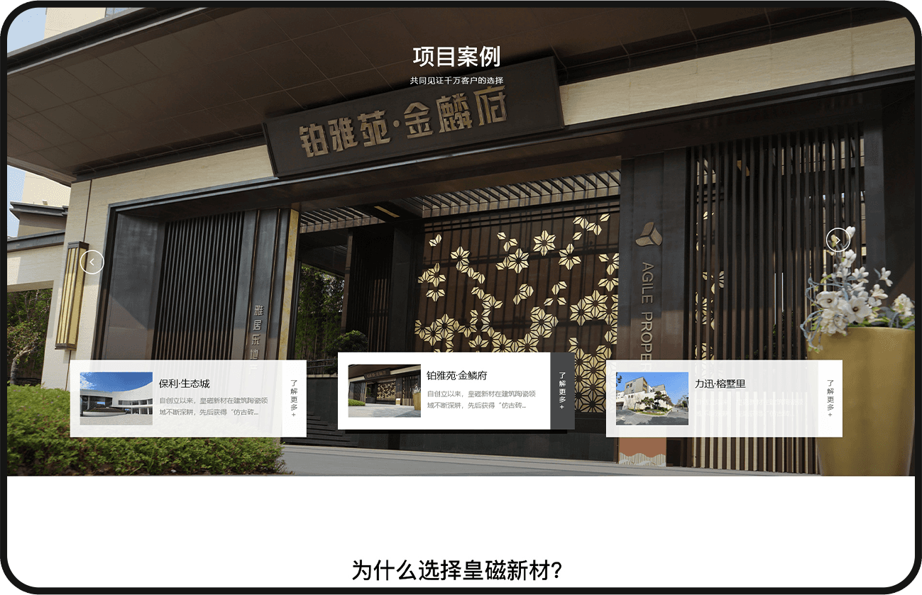 皇磁新材始終堅守“讓建設(shè)者省心,讓居住者安心”的品牌使命。憑借跨界融合的研發(fā)體系、先進的生產(chǎn)體系、豐富的產(chǎn)品體系以及完善的服務(wù)體系,皇磁已成為合景泰富、星河灣等實力地產(chǎn)品牌多年戰(zhàn)略合作伙伴,協(xié)助客戶在全國落地近萬個地產(chǎn)項目,業(yè)務(wù)涉及房地產(chǎn)、商業(yè)地產(chǎn)、市政工程、公共空間等多個領(lǐng)域。未來,皇磁新材將一如既往,堅持自主研發(fā)、智能智造,用科技的力量,助力現(xiàn)代建筑業(yè)綠色健康發(fā)展。