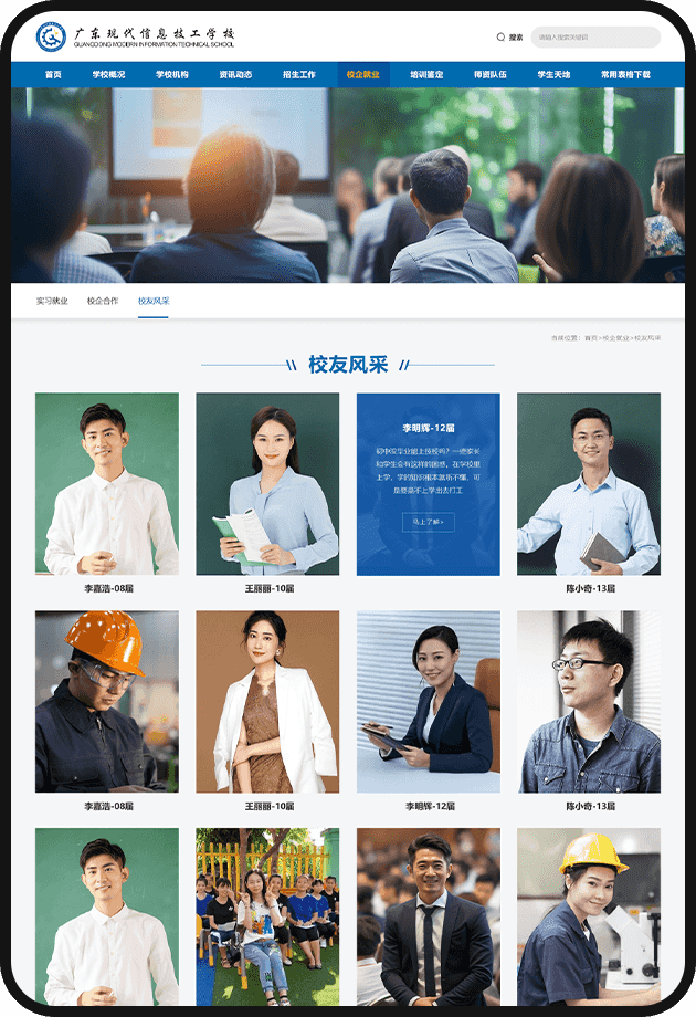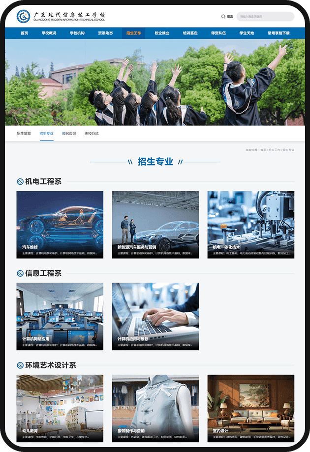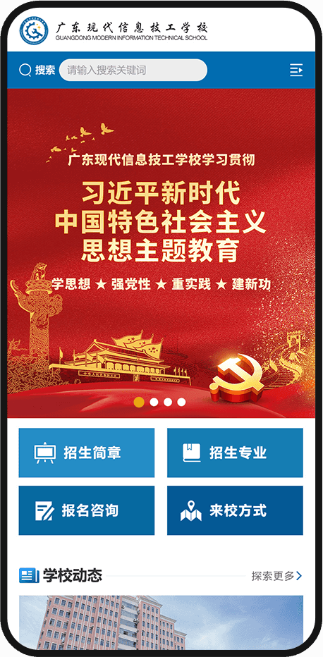 廣東現(xiàn)代信息技工學(xué)校與優(yōu)網(wǎng)科技攜手合作網(wǎng)站建設(shè),雙方合作間展現(xiàn)出高度的默契與專業(yè)協(xié)同,成功打造了一個既符合教育嚴(yán)謹性又貼近中技學(xué)生審美的學(xué)校官方網(wǎng)站。