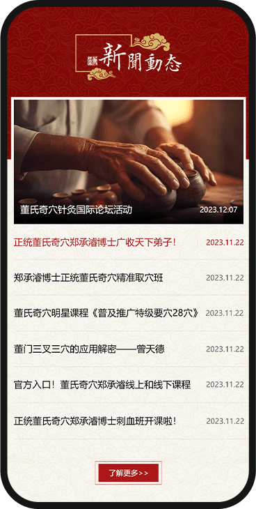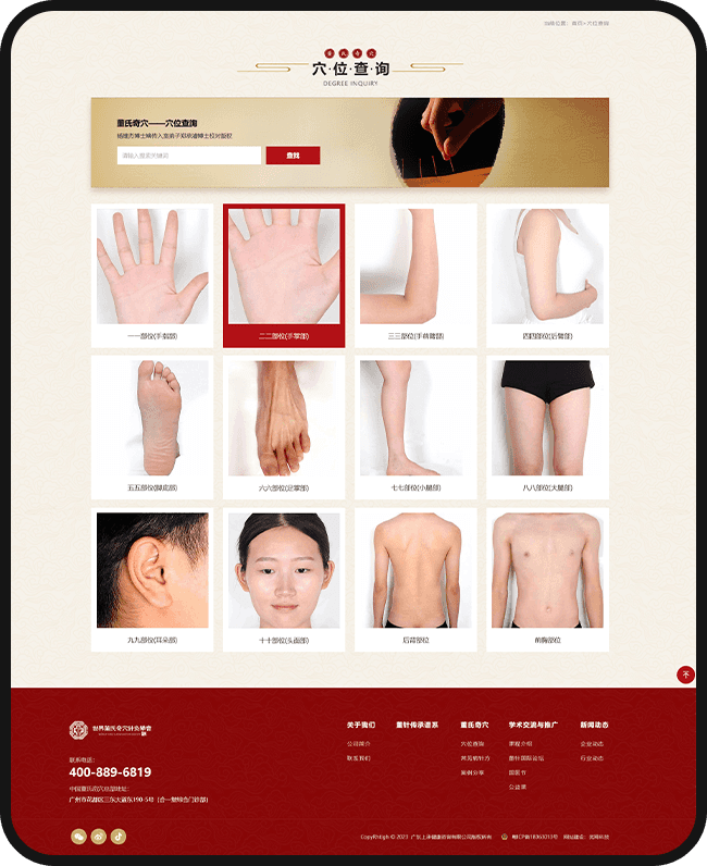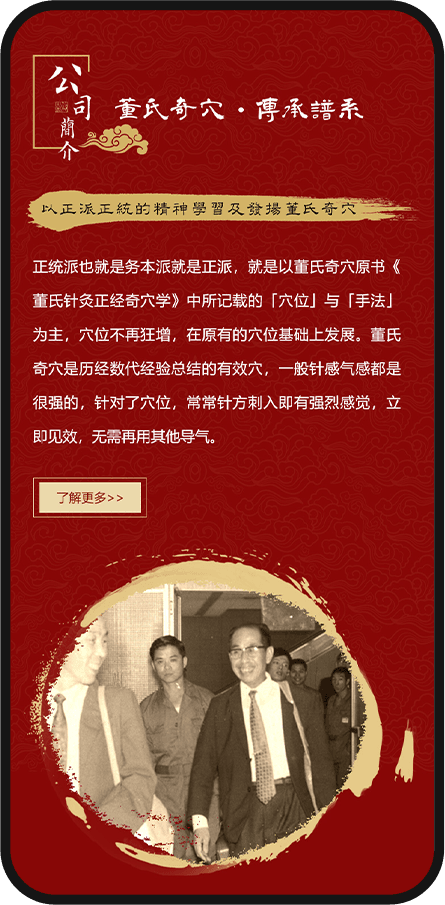 頁(yè)面中董氏奇穴的穴位特寫(xiě)、傳承脈絡(luò)展示等內(nèi)容,既強(qiáng)化了品牌辨識(shí)度,又傳遞出 “正派正統(tǒng)” 的學(xué)術(shù)精神,讓用戶(hù)直觀感受中醫(yī)文化的獨(dú)特韻味與社會(huì)責(zé)任感。