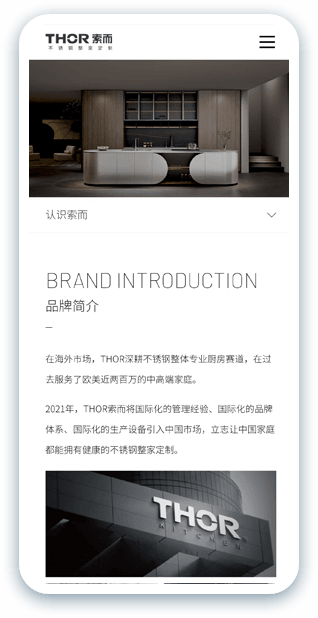 2021年,THOR索而將國(guó)際化的管理經(jīng)驗(yàn)、國(guó)際化的品牌體系、國(guó)際化的生產(chǎn)設(shè)備引入中國(guó)市場(chǎng),立志讓中國(guó)家庭都能擁有健康的不銹鋼整家定制。