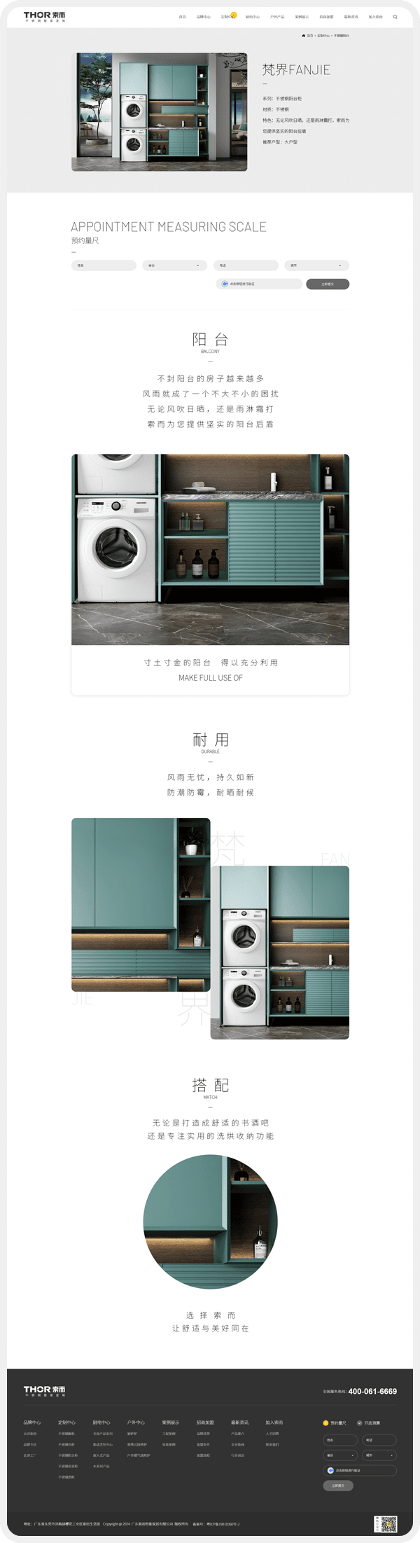 在細(xì)節(jié)處理上,網(wǎng)站底部除了提供便捷的網(wǎng)站地圖以幫助瀏覽者快速查找對(duì)應(yīng)內(nèi)容外,還特意設(shè)置了“預(yù)約量尺”和“開(kāi)店測(cè)算”的快捷表單,不僅提升了用戶體驗(yàn),也為索而精準(zhǔn)獲取潛在用戶提供了有力支持。