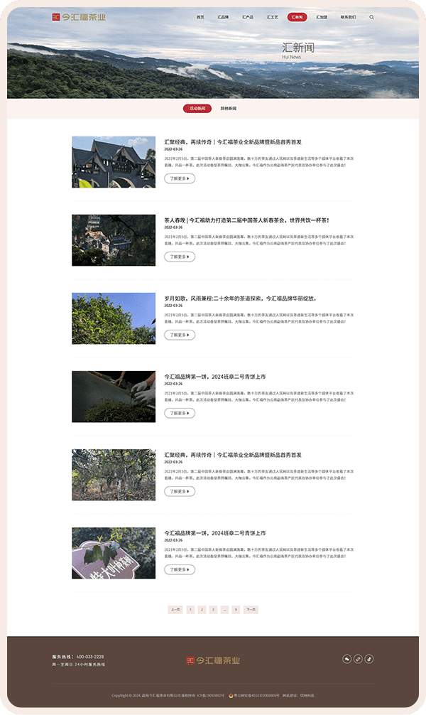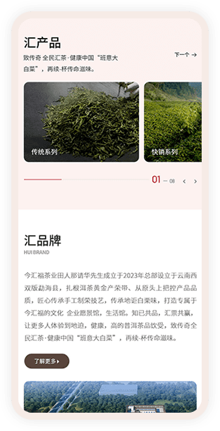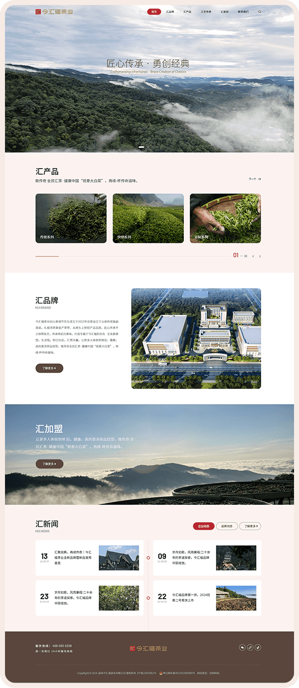 在色調(diào)運(yùn)用上,網(wǎng)站設(shè)計以VI色調(diào)為主基調(diào),巧妙融入品牌LOGO的紅色元素作為點(diǎn)綴,營造出一種既沉穩(wěn)又不失活力的獨(dú)特氛圍。整體設(shè)計風(fēng)格現(xiàn)代且簡潔,充分展現(xiàn)了今匯福茶業(yè)品牌對于匠心傳承與勇創(chuàng)經(jīng)典的執(zhí)著追求。