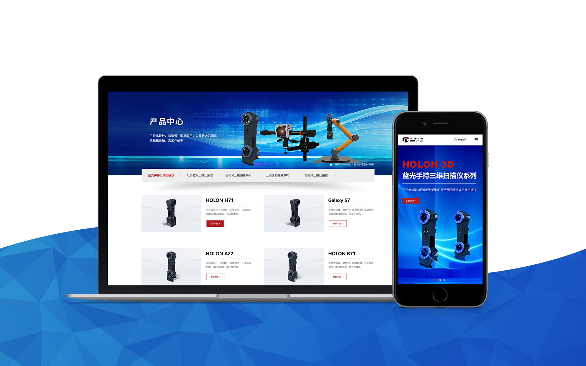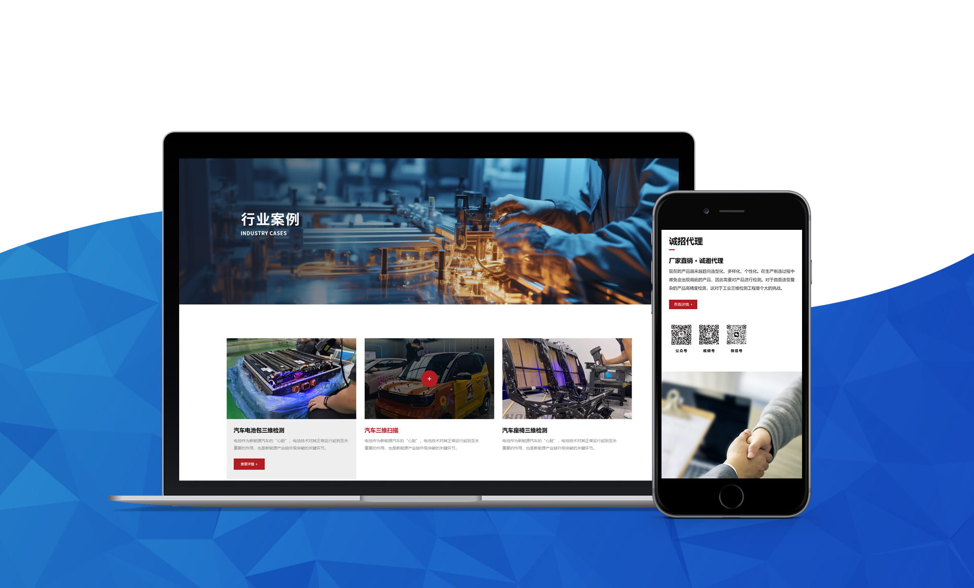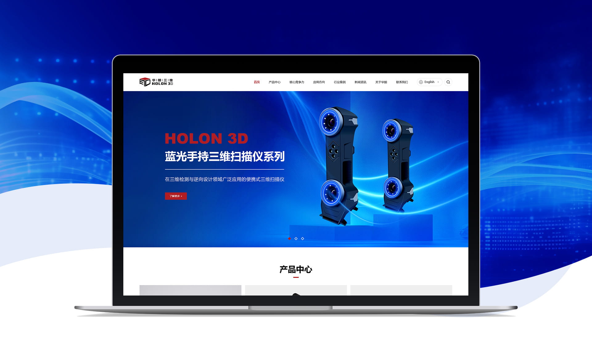 網(wǎng)站首頁以藍(lán)色為主色調(diào),巧妙營造出一種強烈的科技感與專業(yè)氛圍,完美契合三維掃描設(shè)備的高端產(chǎn)品特性。在產(chǎn)品展示區(qū),我們運用直觀的圖像呈現(xiàn)了多款不同型號的三維掃描儀,使用戶能夠迅速領(lǐng)略產(chǎn)品的多樣性與卓越性能。中間區(qū)域則聚焦于產(chǎn)品的應(yīng)用方向,通過生動的展示,幫助用戶對產(chǎn)品在實際應(yīng)用中的表現(xiàn)有了更加直觀的感受。