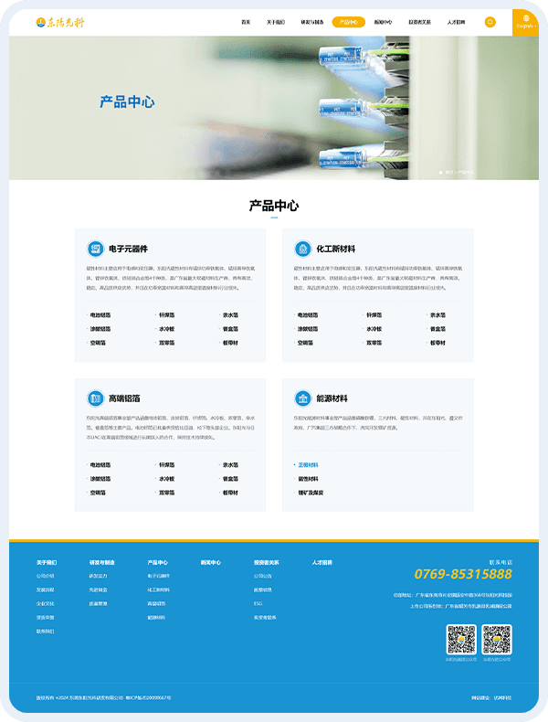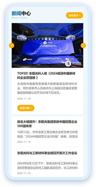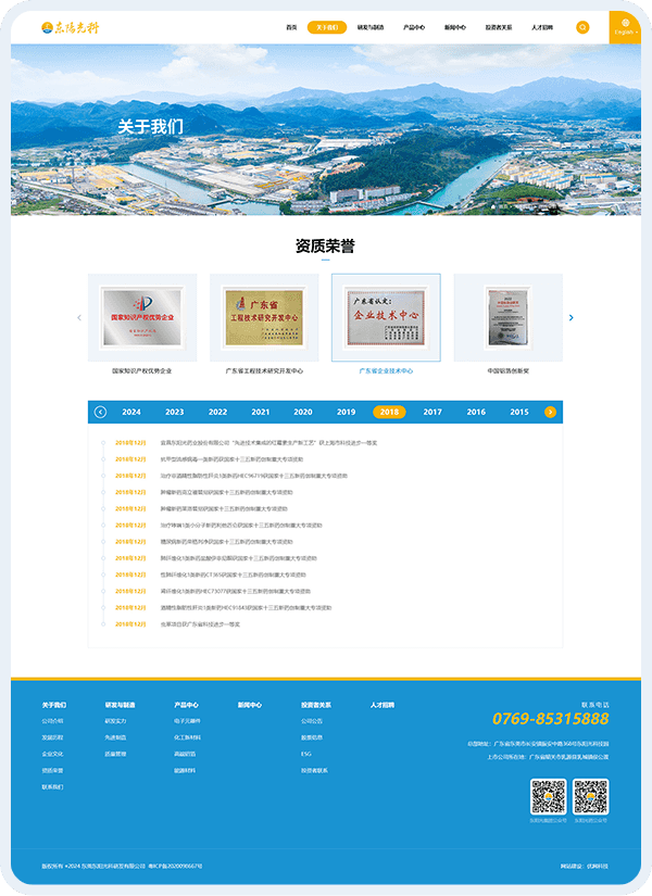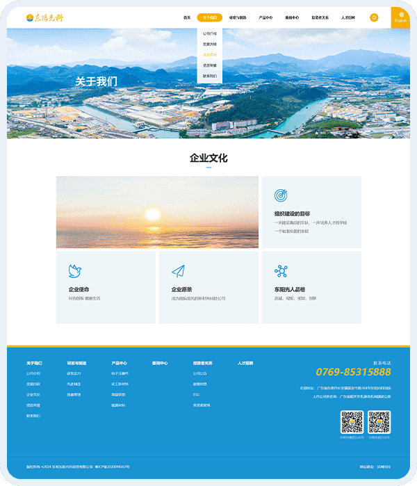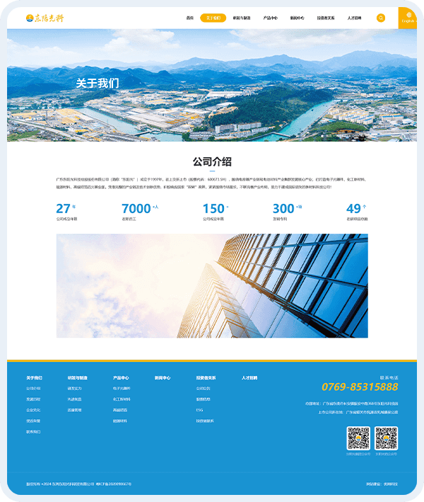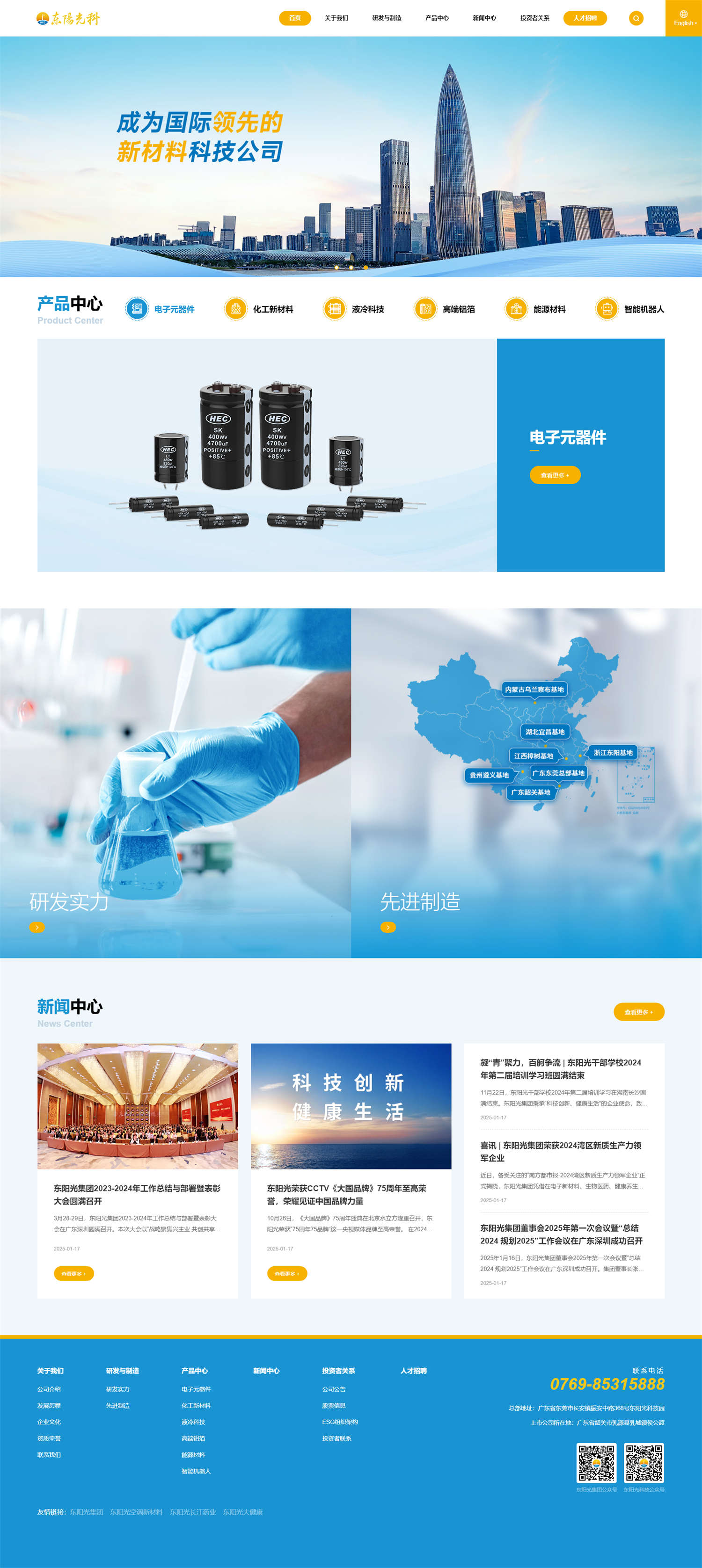 頁面通過合理布局和元素搭配,讓信息展示有序且富有吸引力,全面展現(xiàn)東陽光科的企業(yè)風(fēng)采與潛力。