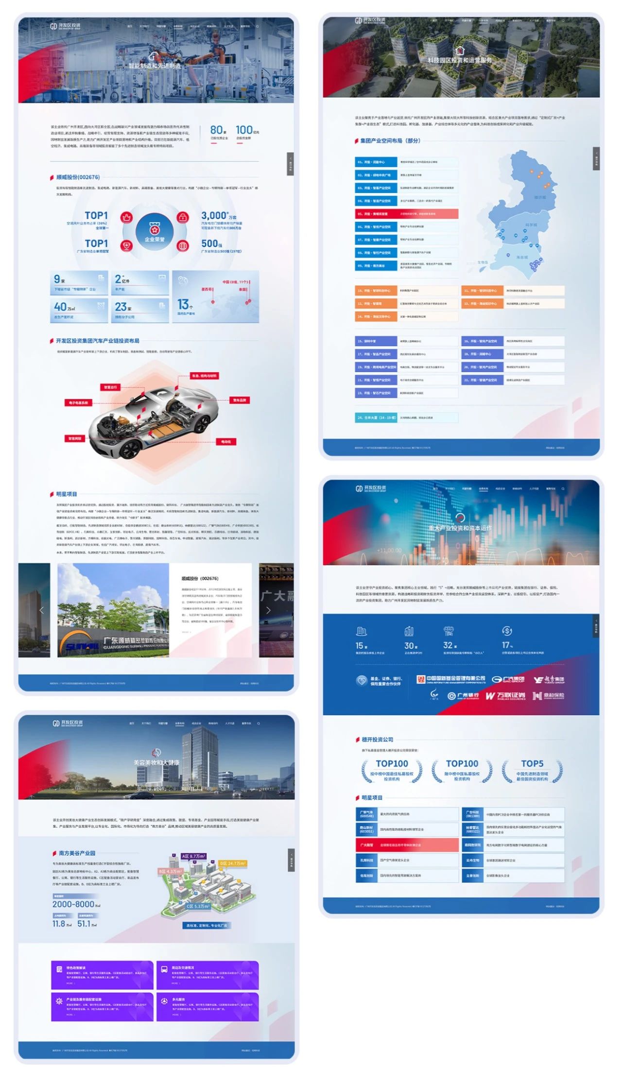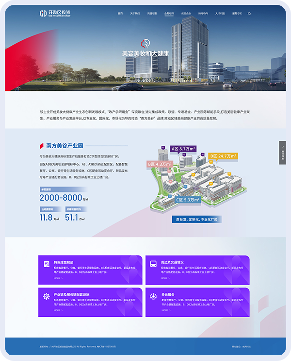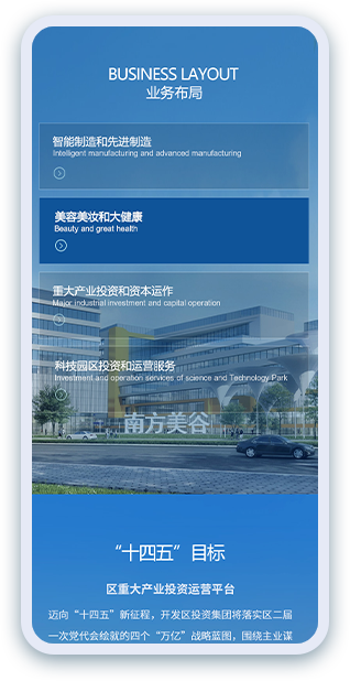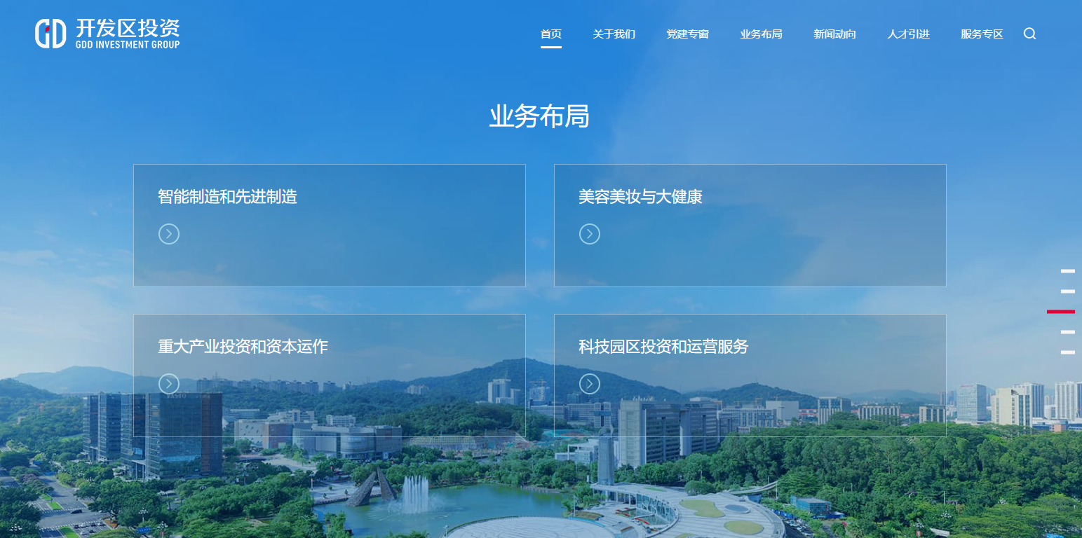 其中,業(yè)務(wù)布局頁面結(jié)合集團(tuán)產(chǎn)業(yè)投資、園區(qū)運(yùn)營等最新發(fā)展動(dòng)態(tài)進(jìn)行重構(gòu),全面展示智能制造、汽車產(chǎn)業(yè)鏈、美容美妝等核心業(yè)務(wù)版圖;