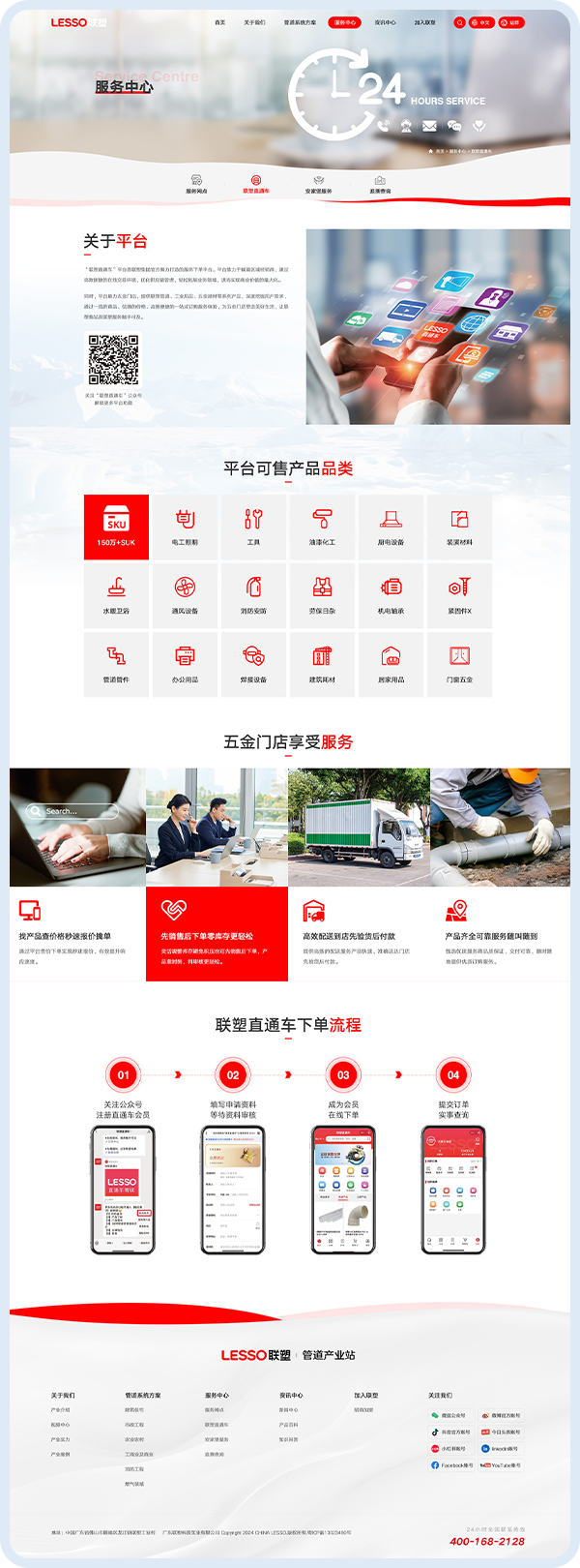 功能服務(wù)一體化:整合 “防偽查詢”“服務(wù)中心”“直通車” 等實用入口,搭配 24 小時全國熱線,滿足用戶驗真、咨詢、售后等需求;知識問答與產(chǎn)品百科板塊針對性解答 “管道規(guī)格選擇”“安全使用” 等問題,實現(xiàn) “展示 + 服務(wù)” 閉環(huán)。