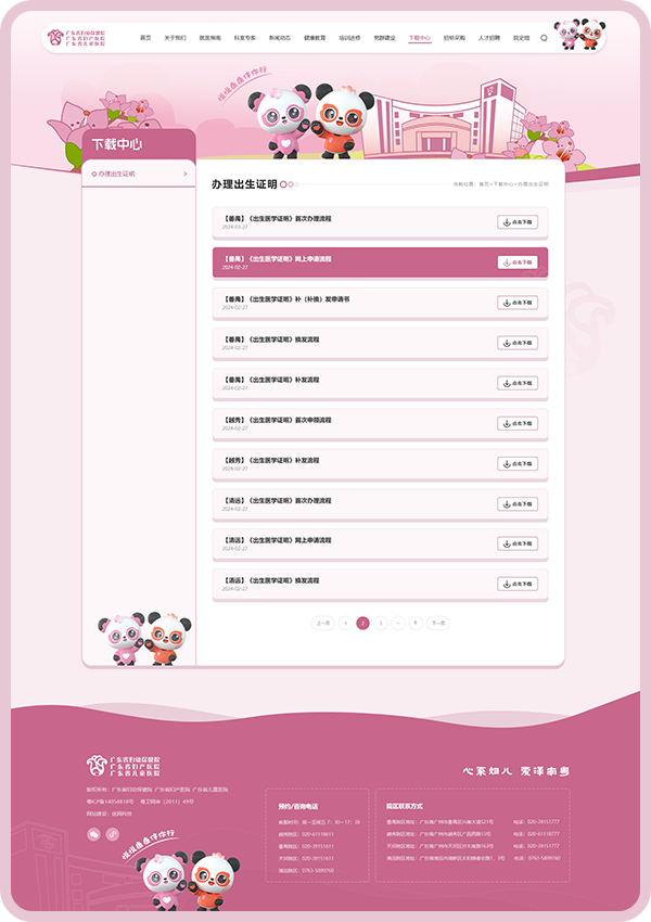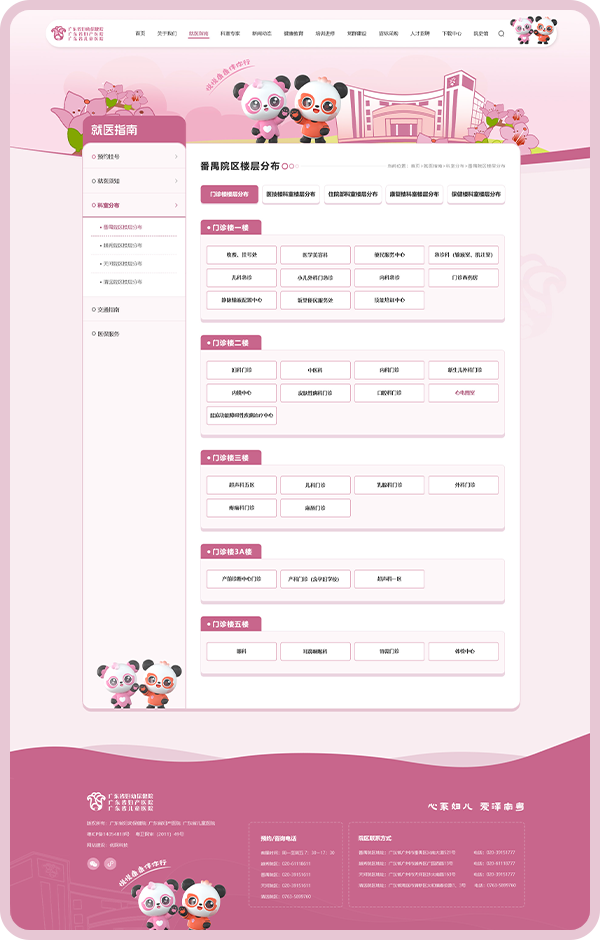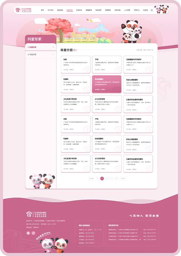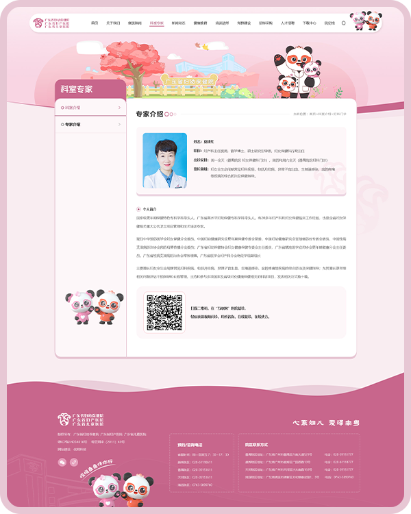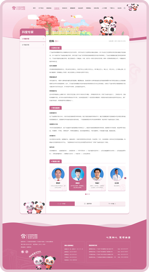 網(wǎng)站在設(shè)計上以 “關(guān)愛婦幼健康” 為核心主題,整體風格簡潔明了、溫馨舒適。色彩搭配選取柔和、溫暖的粉色調(diào);圖片選取貼合婦幼健康主題的內(nèi)容,與醫(yī)院 IP 在各頁面呼應,營造出親切、安心的視覺感受,契合婦幼保健服務(wù)的特質(zhì)。