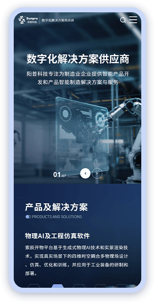 陽普科技作為深耕制造領(lǐng)域的數(shù)字化解決方案服務(wù)商,攜手索辰、PTC 等行業(yè)領(lǐng)軍伙伴,已為上千家企業(yè)提供專業(yè)服務(wù)。此次其官方網(wǎng)站(https://www.sunprocn.com/)由優(yōu)網(wǎng)科技量身打造,優(yōu)網(wǎng)科技憑借深厚的建站積淀與精湛技術(shù),精準洞察陽普科技的業(yè)務(wù)核心與發(fā)展需求,高效整合企業(yè)核心服務(wù)體系、豐富客戶案例等關(guān)鍵資源。依托強大的定制化建站實力,優(yōu)網(wǎng)科技不僅為陽普科技搭建起全方位展示企業(yè)實力的專業(yè)平臺,讓客戶能便捷直觀地了解其服務(wù)優(yōu)勢,更助力陽普科技進一步強化數(shù)字化服務(wù)品牌形象,為雙方深度合作寫下亮眼開篇。