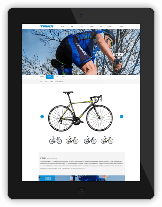 企業(yè)作為一家集自行車研發(fā)、生產(chǎn)和貿(mào)易為一體的綜合型集團(tuán)企業(yè),以中、高檔山地自行車、減震自行車、折疊自行車等為主導(dǎo)產(chǎn)品,此次官網(wǎng)建設(shè)融合企業(yè)走向現(xiàn)代化、集團(tuán)化、國際化的文化理念,在網(wǎng)站設(shè)計(jì)中完美體現(xiàn)。