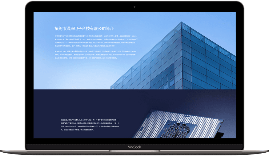網(wǎng)站首頁以多幅產(chǎn)品圖從上至下,一屏屏進行展示,讓瀏覽者能夠了解到主打產(chǎn)品。同時,底部展示企業(yè)介紹和獵聲的資訊,讓瀏覽者還能夠了解到企業(yè)的實力和資訊。