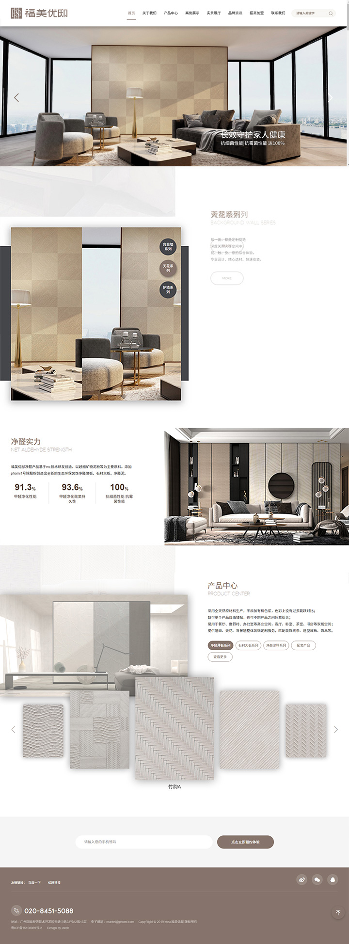 廣東省福美材料科學技術有限公司,福美(Phomi)是公司旗下品牌,成立于2008年,個工廠建設于廣州番禺,2016年起工廠已全球化布局,總部設立于廣州經濟技術開發(fā)區(qū)。福美采用全天然原材料生產,不添加有機色漿,色彩上沒有過多跳躍對比;既可單個產品自由鋪貼,也可不同產品之間任意組合;常用于餐廳、度假村、辦公室等商業(yè)空間,客廳、臥室、茶室、書房等家居空間;提供墻面、天花、背景墻整體裝飾定制服務,匹配裝飾線條、造型底板、飾品等。