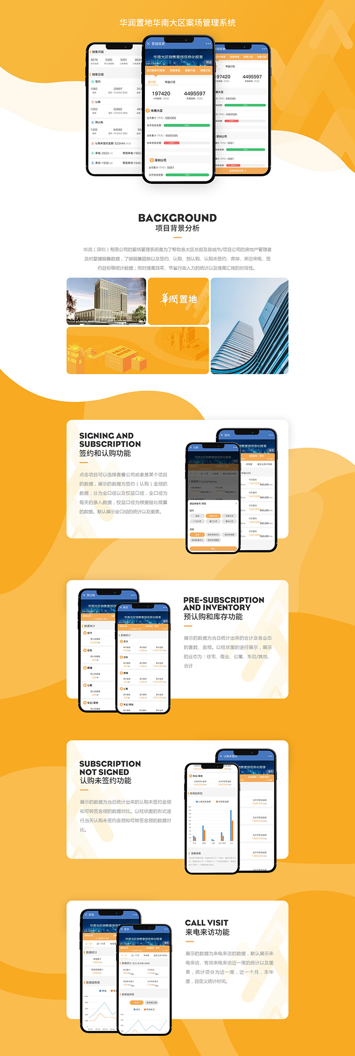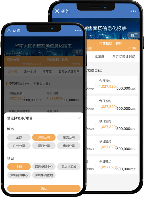華潤(深圳)有限公司的案場管理系統(tǒng)是為了幫助各大區(qū)總部及各城市/項(xiàng)目公司的房地產(chǎn)管理者及時(shí)掌握銷售數(shù)據(jù),了解銷售趨勢以及簽約、認(rèn)購、預(yù)認(rèn)購、認(rèn)購未簽約、庫存、來訪來電、簽約目標(biāo)等統(tǒng)計(jì)數(shù)據(jù);同時(shí)提高效率、節(jié)省行政人力的統(tǒng)計(jì)以及提高匯報(bào)的時(shí)效性。