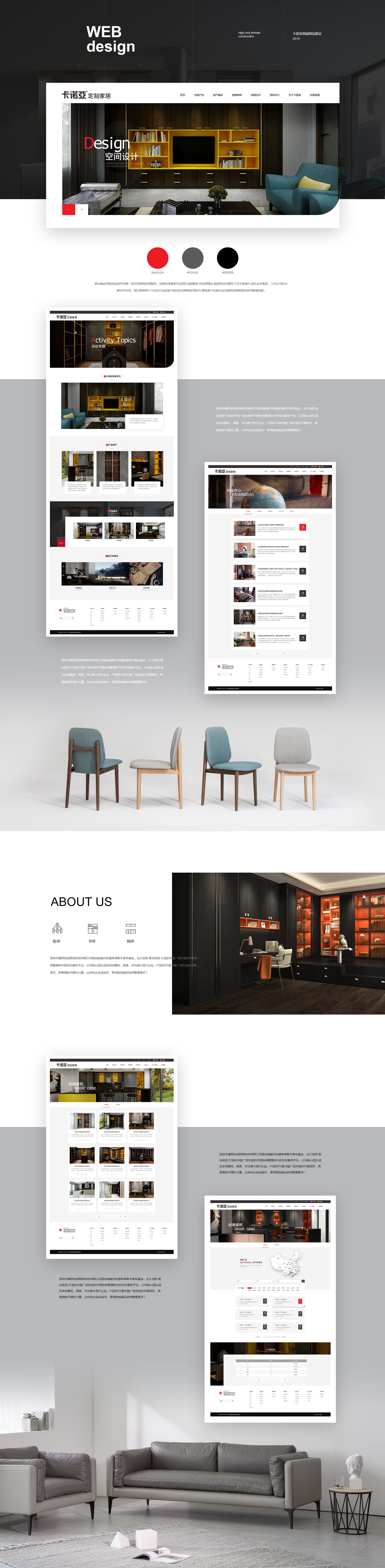 整體首頁設(shè)計上,頁面設(shè)計以VI的紅色為主色調(diào),黑色作為襯托,凸顯卡諾亞的輕奢品牌感。整體頁面結(jié)構(gòu)清晰,運用簡明的色彩和圖片搭配突出卡諾亞家居產(chǎn)品的高端與溫馨的效果,頁面點綴融入了logo形象,在美觀的同時不失細節(jié)感。