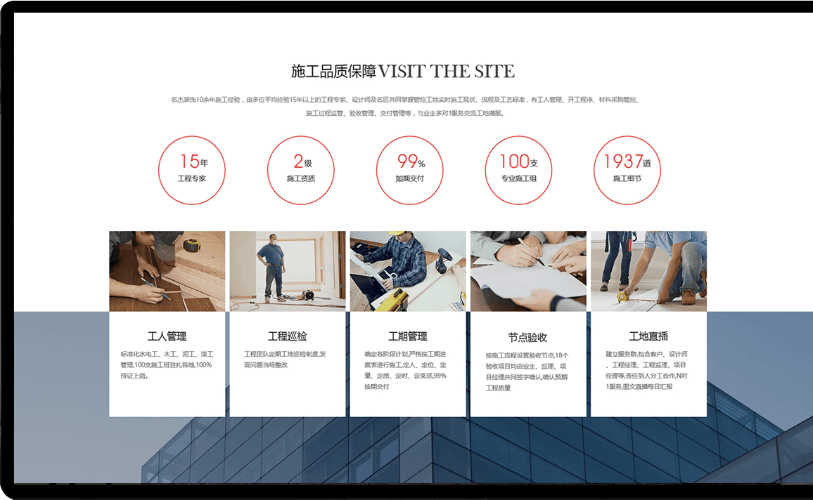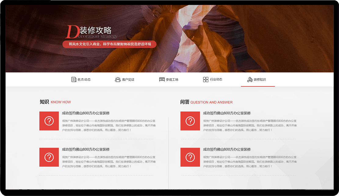 網(wǎng)頁(yè)設(shè)計(jì)的每個(gè)模塊均放代表名杰文化的宣傳語(yǔ),豐富的案例展示凸顯公司實(shí)力,貼近用戶體驗(yàn)的點(diǎn)綴與宣傳語(yǔ)結(jié)合突出了名杰注重細(xì)節(jié)的發(fā)展理念,另外整個(gè)頁(yè)面全方位展示了公司的各方面優(yōu)勢(shì),進(jìn)一步彰顯企業(yè)的真正實(shí)力。