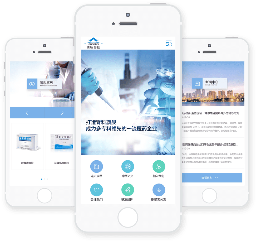 通過(guò)走近康臣、康臣之光、加入康臣、關(guān)注康臣、研發(fā)創(chuàng)新、投資者關(guān)系六個(gè)主要展示進(jìn)行篩選,用戶能快速有效進(jìn)行掌握。