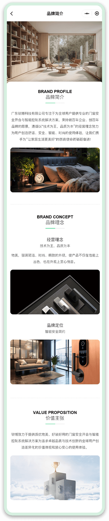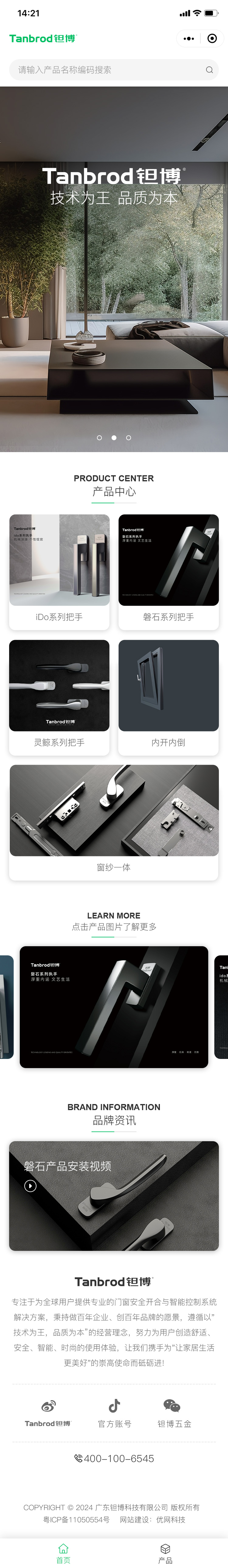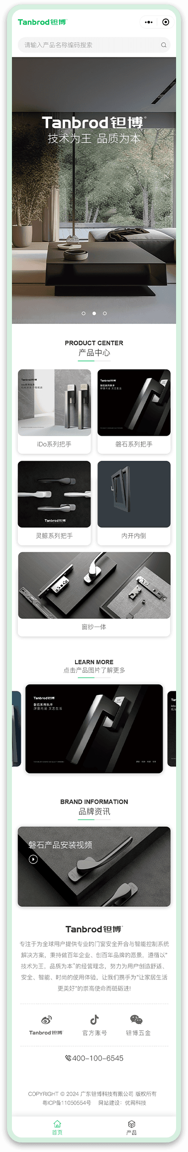 鉭博門(mén)窗五金小程序網(wǎng)站設(shè)計(jì)體現(xiàn)了現(xiàn)代簡(jiǎn)潔的風(fēng)格,色彩搭配合理,以白色為主色調(diào),黑色文字和圖標(biāo)為輔,營(yíng)造了一種專(zhuān)業(yè)且輕奢的視覺(jué)感受。