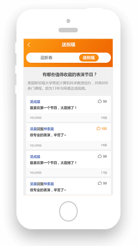 大型央企的春節(jié)應(yīng)用開發(fā)圍繞“核你一起過大年”這個主題,主要是為了讓員工們在新春佳節(jié),除了可以與親朋好友團(tuán)聚,還可以通過微信企業(yè)號向員工們傳遞春節(jié)各地各處的年味年事,并開展喜慶歡快的主題搶樓活動,為大型央企核鬧新春增光添彩。春節(jié)應(yīng)用主要為兩大欄目:迎新春和送祝福。迎新春主要是各地的新春祝福視頻和圖文播報(bào),查看完資訊后還能在信息下方進(jìn)行留言討論和點(diǎn)贊,增強(qiáng)互動性。送祝福是主題搶樓活動,集團(tuán)總部設(shè)置了幾個有意思的主題,分別在不同的時間段開啟互動留祝福搶樓。后臺管理人員能夠及時查看到搶樓的祝福信息,同時附有樓層號,想要查詢誰搶樓成功,只需在搜索框里輸入樓層數(shù)字即可出現(xiàn)搶樓成功的人員名單。