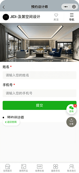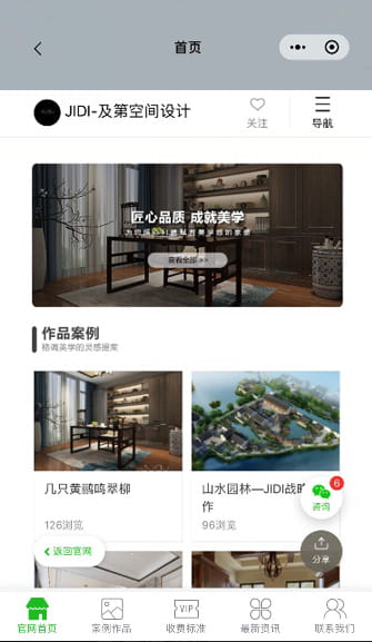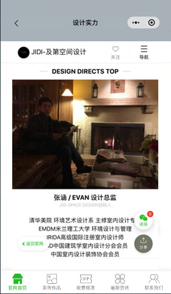 首頁(yè)中首屏輪播的畫面展示出不同的產(chǎn)品設(shè)計(jì)及內(nèi)容,極具吸引力,并且可以通過(guò)點(diǎn)擊顯示的畫面,會(huì)跳轉(zhuǎn)對(duì)應(yīng)不同的鏈接,具有互動(dòng)效果。導(dǎo)航分為“官網(wǎng)首頁(yè)”“案例作品”“收費(fèi)標(biāo)準(zhǔn)”“新資訊”“設(shè)計(jì)實(shí)力”“榮譽(yù)獎(jiǎng)項(xiàng)”“聯(lián)系我們”“預(yù)約設(shè)計(jì)師”等欄目,提供關(guān)鍵信息,能夠讓用戶快速查詢主要詳情。
