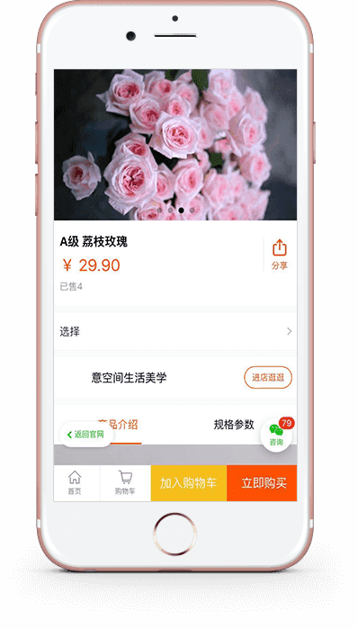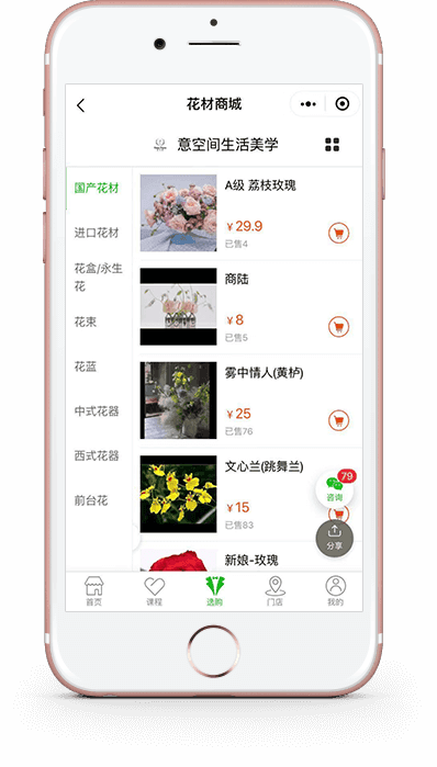 整體的設(shè)計(jì)思路充分考慮到工作室的整體形象,通過(guò)Banner輪播圖的展示,并加以文字表述,突出意空間花道花藝工作室的形象和特色。主要信息通過(guò)圖標(biāo)加簡(jiǎn)短的文字展現(xiàn),簡(jiǎn)潔明了的突出工作室的服務(wù)特點(diǎn)及有關(guān)工作室的介紹。中間的部分文字用鮮明的色彩突出各種優(yōu)惠福利消息提醒,有利于吸引用戶購(gòu)買產(chǎn)品。另外往下部分是圖片部分,突出產(chǎn)品的效果和特色,吸引用戶點(diǎn)擊瀏覽。