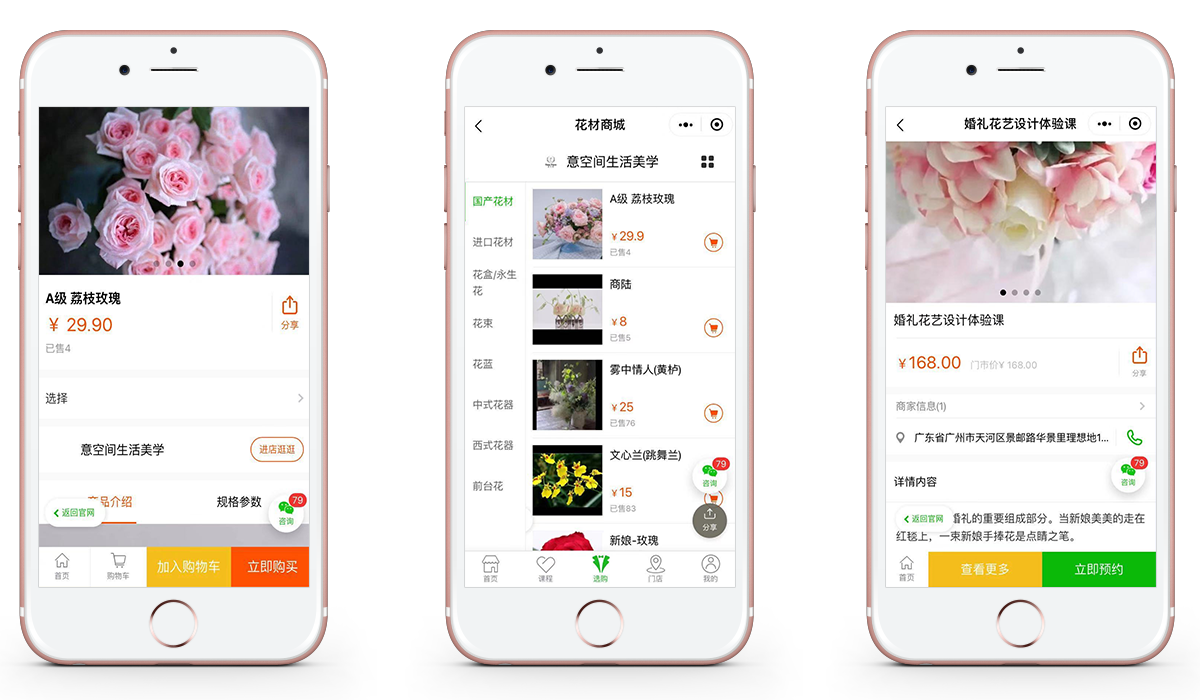 具有選購(gòu)功能,用戶可以通過(guò)查閱產(chǎn)品的相關(guān)信息,對(duì)喜好的產(chǎn)品進(jìn)行下單至購(gòu)物車,并購(gòu)買;并且配置預(yù)約功能,提供用戶根據(jù)個(gè)人需求,可進(jìn)行預(yù)約課程,具備一定的互動(dòng)性,提升用戶的體驗(yàn)。另外還提供地址導(dǎo)航,方便用戶能夠快速查找門店,充分的考慮到用戶的便利性,并且在一定程度上提升了工作室的友好服務(wù)形象。
