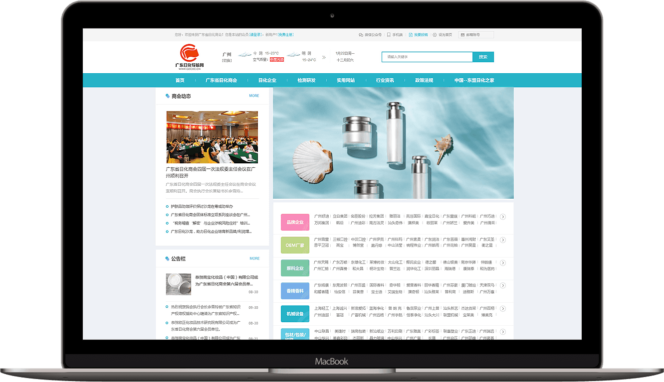 在網(wǎng)頁(yè)設(shè)計(jì)上,主要運(yùn)用多種明亮的色彩進(jìn)行搭配,整體版面展示清爽舒適,整體布局邏輯清晰,主體信息突出,體現(xiàn)網(wǎng)站細(xì)膩、高端的特性。Banner與商會(huì)動(dòng)態(tài)并行的形式,讓畫(huà)面更加豐富,增強(qiáng)頁(yè)面的可讀性。內(nèi)容詳實(shí),展示不失美感。行業(yè)資訊和政策法規(guī)區(qū)域采用不規(guī)則模塊的設(shè)計(jì)手法、時(shí)尚雜志的排版風(fēng)格,廣告圖與模塊錯(cuò)落有致,使版面更加時(shí)尚美觀。