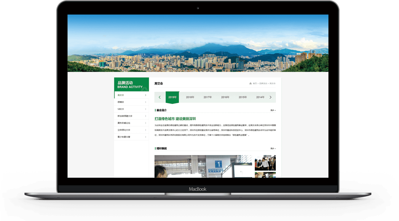 通過banner大圖加“打造綠色城市,建設(shè)美麗深圳”的字眼,形象的展示企業(yè)的內(nèi)在特點(diǎn)。同時(shí)運(yùn)用企業(yè)vi色系綠色,在整體頁(yè)面中作適當(dāng)?shù)狞c(diǎn)綴,有效凸顯了企業(yè)的氣質(zhì)和增添了畫面滿滿的活力感,使用戶體驗(yàn)效果上升一個(gè)層次。