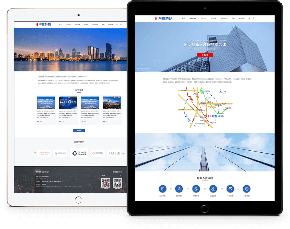 色調運用VI色,以白色為主,藍色跟紅色作為點綴色,襯出公司業(yè)務創(chuàng)新人才服務特點。整體的網頁設計展示清晰,簡約,并且通過排版的有序合理性,能更好的引領用戶瀏覽信息,展示公司的專業(yè)形象,進一步提升用戶體驗。