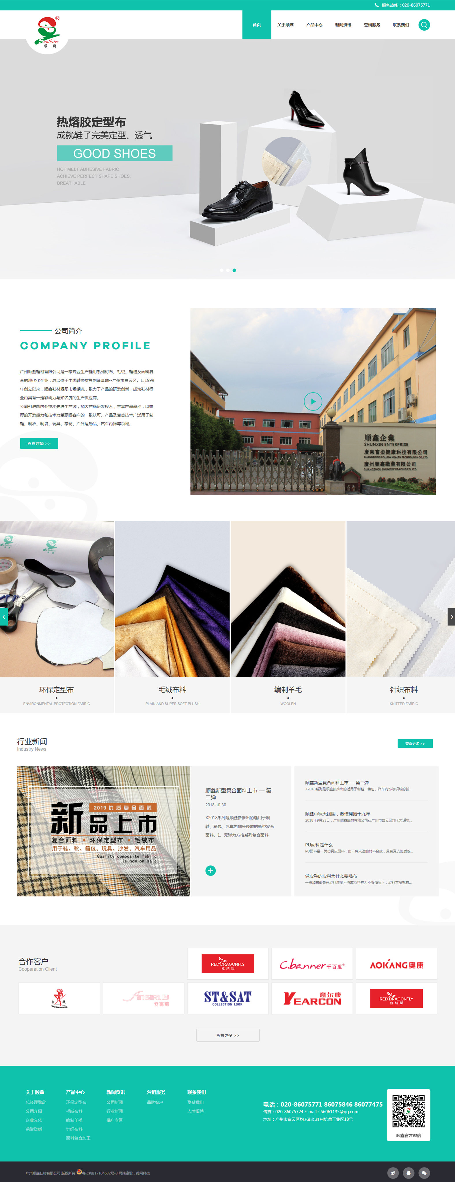 顺鑫鞋材官方网站改版由优网科技完成并于近期开通上线啦!网页设计突出展示鞋材绿色环保,通过宽屏卡片式设计展现顺鑫时尚、大气的页面风格,凸显顺鑫鞋材的产品特性和品牌特性。优网科技设计师在色调方面采用了Logo VI色系的蓝绿色作为点缀色,使得网站整体观感大气时尚、紧接潮流。通过此次企业网站建设,一方面突出顺鑫鞋材产品特性,展示企业实力;另外一方面经销商可通过官方网了解鞋材的新样式。