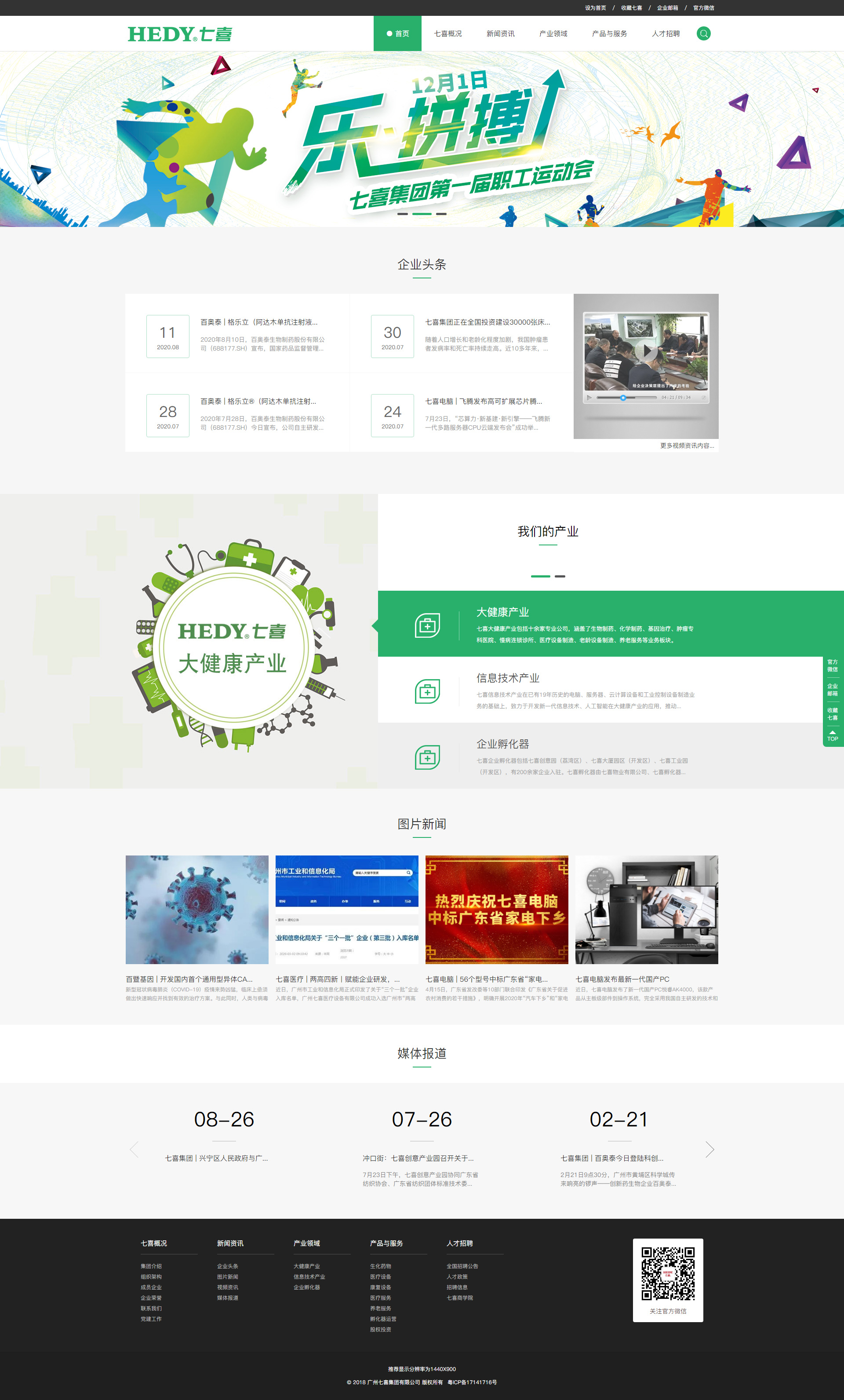 广州七喜集团有限公司这次跟优网合作改版集团官网,网站建设主要是展示公司集团实力为主。网站整体色调以七喜的VI颜色绿色为主,这样的设计也是跟七喜健康产业相关联。 首页排版简洁、大气,比较符合现代用户审美。页面排版用了绿色的小色块,鼠标移动之后有效果展示,使得整个页面清新,明亮。