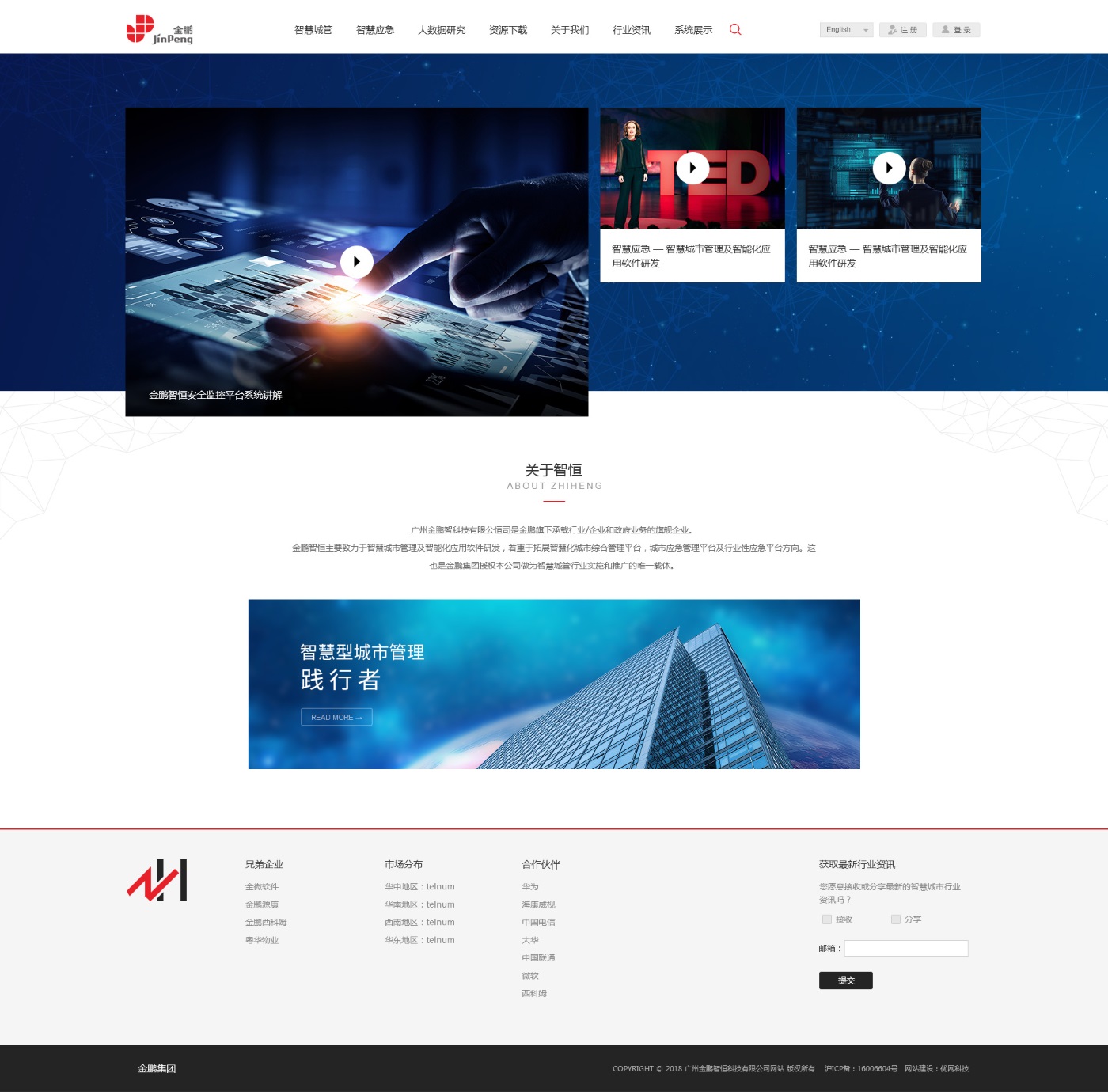 优网科技与金鹏集团再度携手合作,在之前合作的基础上,优网科技积极地响应并提出了关于网站建设的建议,与金鹏集团携手共同建设金鹏智恒官网,以达成此次合作。网页设计色调运用了科技蓝为点缀色,以白色为背景色,体现金鹏智恒产业化的科技以及智慧化城市管理业务的特点。首页的架构设计简单、清晰,排版布局合理有序。网站首页主要以展示公司以及智慧城市综合管理的视频资料为主,以此凸显出金鹏智恒的实力和企业形象。