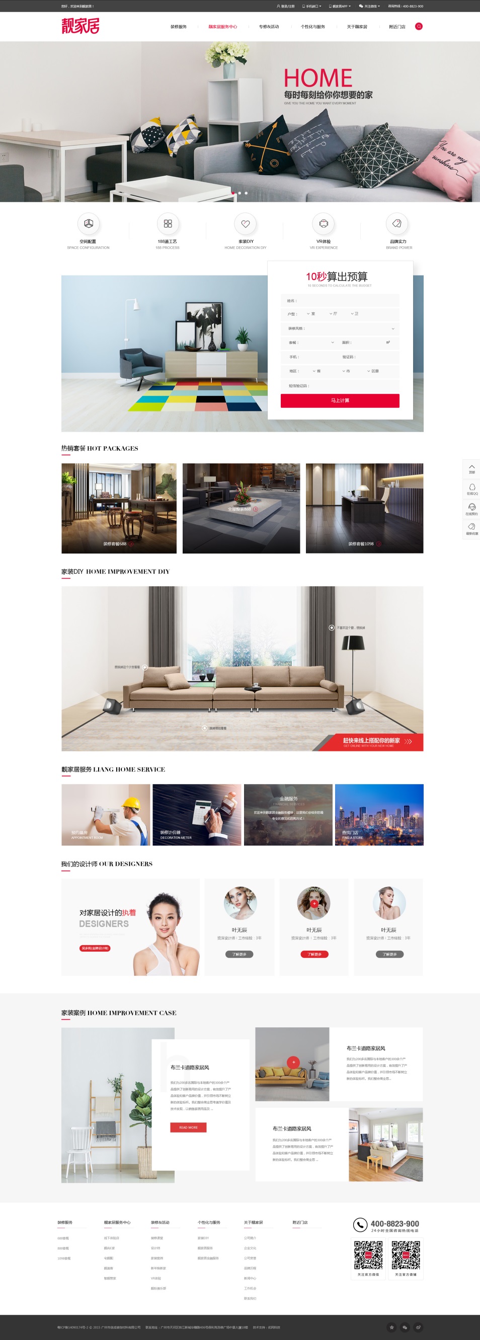 靓家居此次官方网站建设主要以品牌营销为主,通过推广转化流量。优网科技设计师主要以靓家居的VI色红色作为点缀色,网站主要以热情、清新、活跃的风格为主,符合靓家居简约、时尚的品牌理念,让整个页面看似简约却又不失时尚感,又能够快速捕捉用户的眼球。网站结构层次分明,网页设计采用大幅度的图片和简约的文字说明,符合现在用户的浏览习惯,有效展示品牌形象。同时,在网站功能这一方面,添加了计价功能、会员功能、领取优惠券的功能、空间的DIY功能等,其中,这些功能的设计从侧面彰显出企业实力,有利于加强企业与用户之间的互动,提升用户体验。