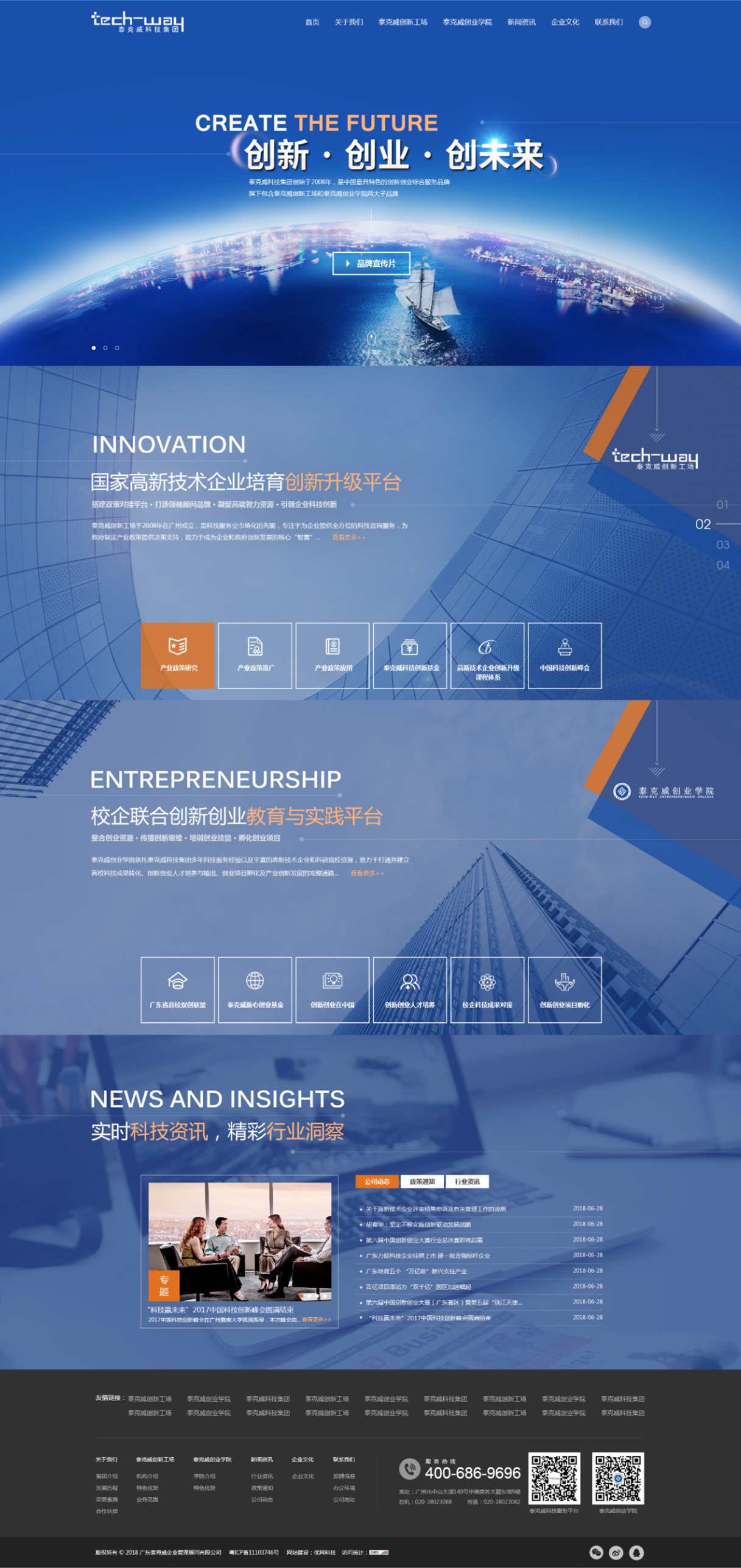 网站建设的功能涵盖较为全面,展示以两大品牌为主:泰克威创新工厂与泰克威创业学院,让泰克威的客户能够清晰明确地了解到泰克威两大品牌的业务范围。泰克威科技集团通过这次的网站改版搭建,摆脱以往成旧的传统网站模式,展示新的企业形象,提升泰克威集团在市场的竞争力。