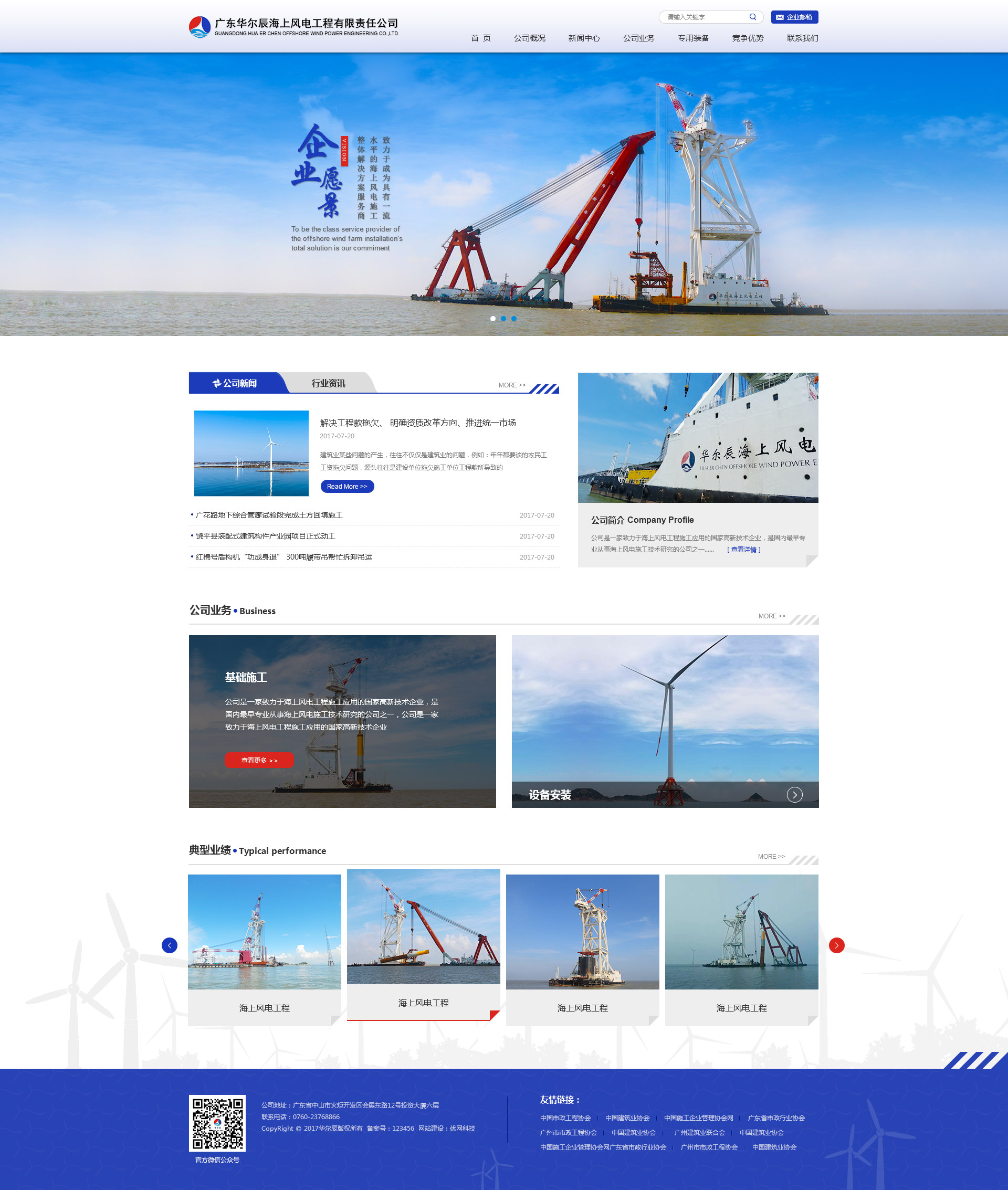 广东华尔辰海上风电工程有限责任公司网站由优网科技完成于近期开通上线了!网站的整体色调以华尔辰公司LOGO中的蓝色为主,代表公司创新、发展理念。首页banner展现企业使命、核心价值观、企业愿景,稳重大气尽显风范。首页以三大板块构成:公司新闻、公司业务、公司绩效。整体的架构设计以简单、清晰为主线,页面加上动态效果的体现,凸显网站的灵动性。