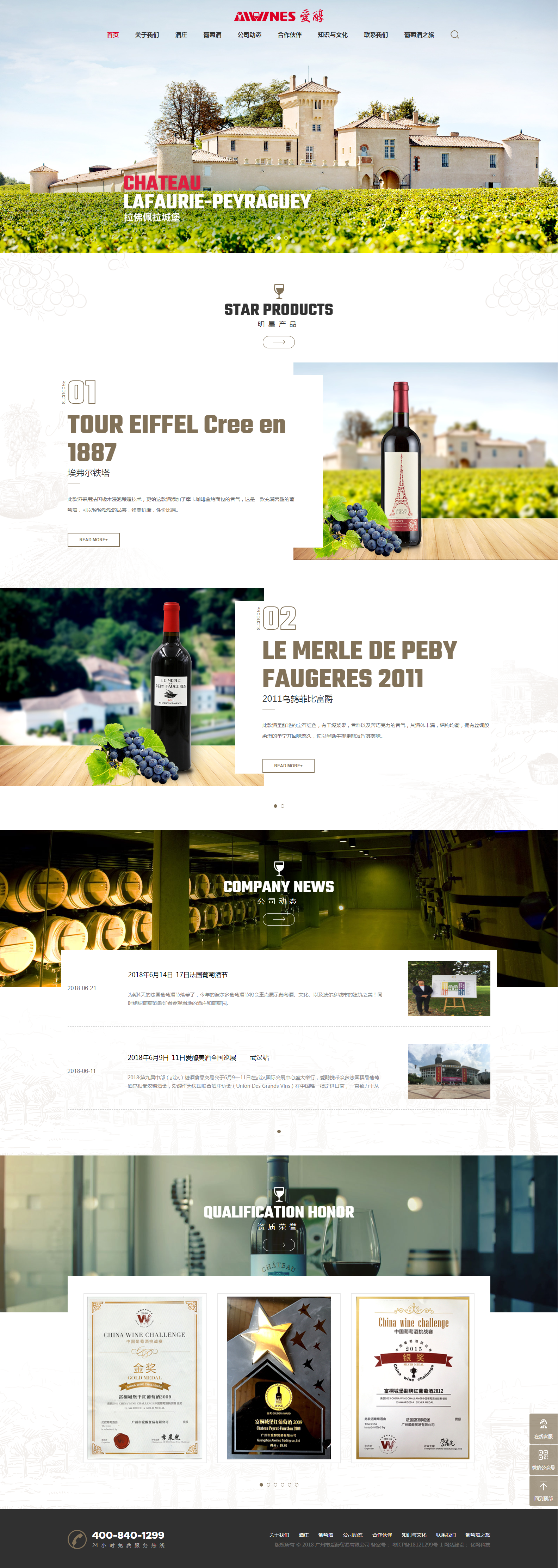 广州市爱醇贸易有限公司官网改版项目由优网科技完成并于近期上线了!网页设计延用了扁平化风格,使整个页面更加简洁明亮;Banner采用了葡萄庄园作为背景图,大气美观。在色调的运用上,Logo VI红色进行点缀,让整个页面大气又不失活力;页面的底色为白色,同时添加了与葡萄酒相关的元素图案做为底衬,与爱醇葡萄酒行业相契合。产品区域运用了宽屏的图文搭配展示,不规则板块设计凸出爱醇的明星产品。网站特设酒庄栏目,让客户能通过酒庄深入了解葡萄酒的产源,从而传播酒文化。