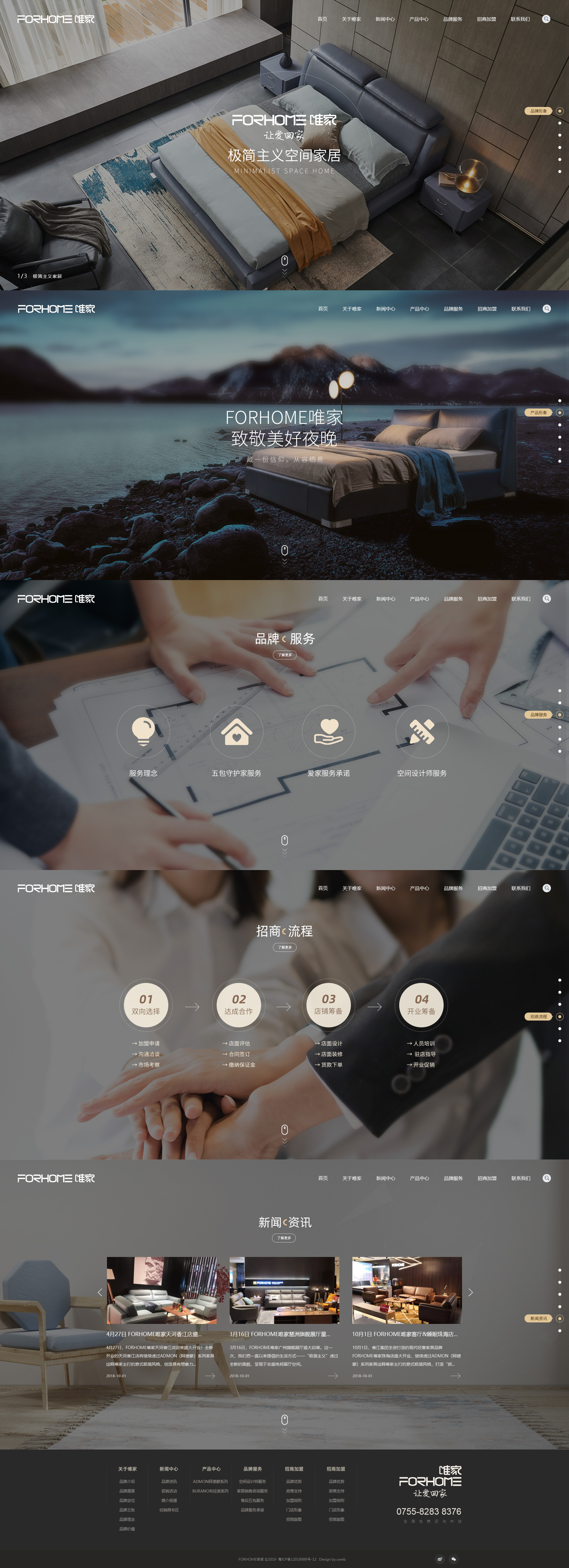 唯家家居网站建设项目正式开通上线啦!优网科技专注于广州网站建设,此次合作方是深圳香江家居旗下的明星品牌——唯家家居。广州网站建设整体以极简主义为设计核心,宽屏切换结合产品场景能更好宣传品牌形象,让页面整体更舒适,网站的动态效果优化,页面排版整齐,内容布局上banner以大屏动态的形式展现企业的品牌形象,往下依次是展示产品形象,品牌服务,招商流程,新闻资讯等信息,提升了用户浏览网站的体验感受。同时网页设计中在每个点缀上都融入了logoVI元素白色,将品牌形象展示的更加清晰,凸显唯家的品牌理念,整个广州网站建设设计将品牌与网站完美结合在一起,把企业的文化气息展现的淋漓尽致。